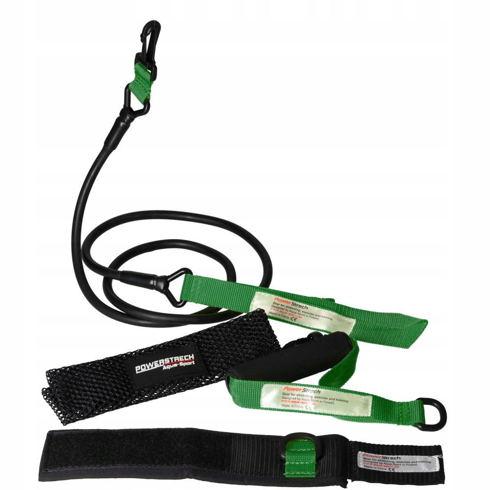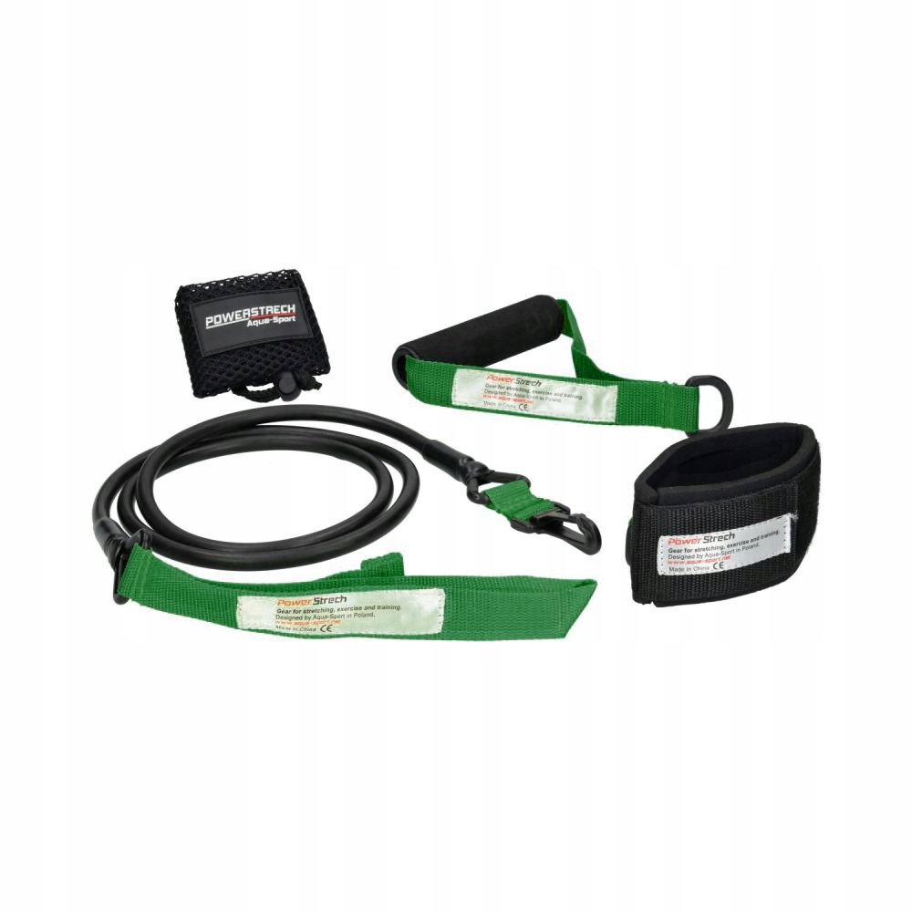 AQUA-SPORT POWERSTRECH DRYLAND SET GREEN RESISTANCE GUMA DO ĆWICZEŃ NA LĄD Z UCHWYTEM I PASKIEM NA KOSTKI AS32080