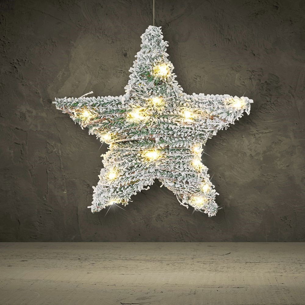EFEKTOWNA - Gwiazda wykonana z tworzywa w kolorze zielonym oraz gałązek wierzby. Swoim wyglądem imituje gałązki choinki pokryte śniegiem, co tworzy niepowtarzalny efekt.