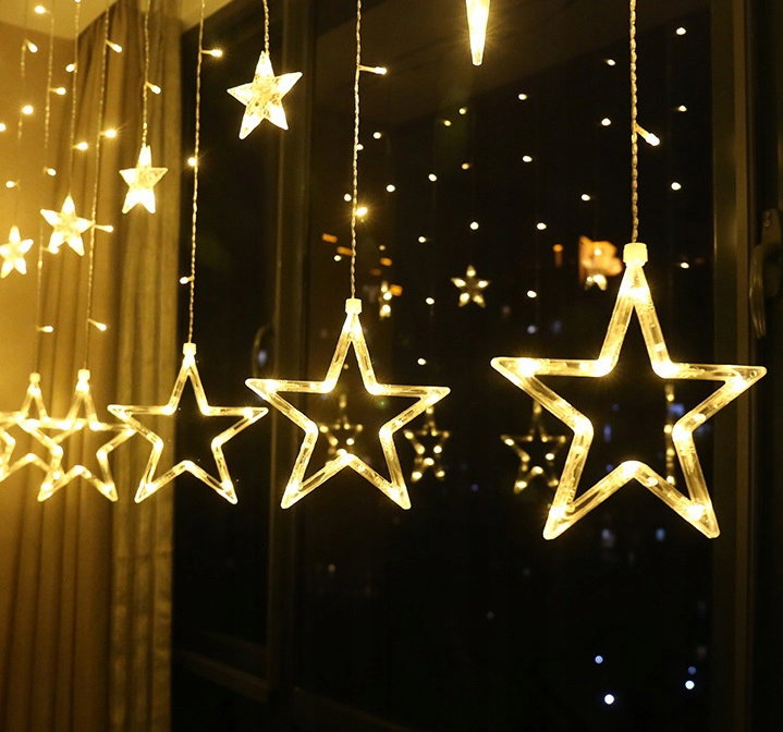 Gwiazdy Wiszące Lampki Choinkowe Kurtyna 130 x LED