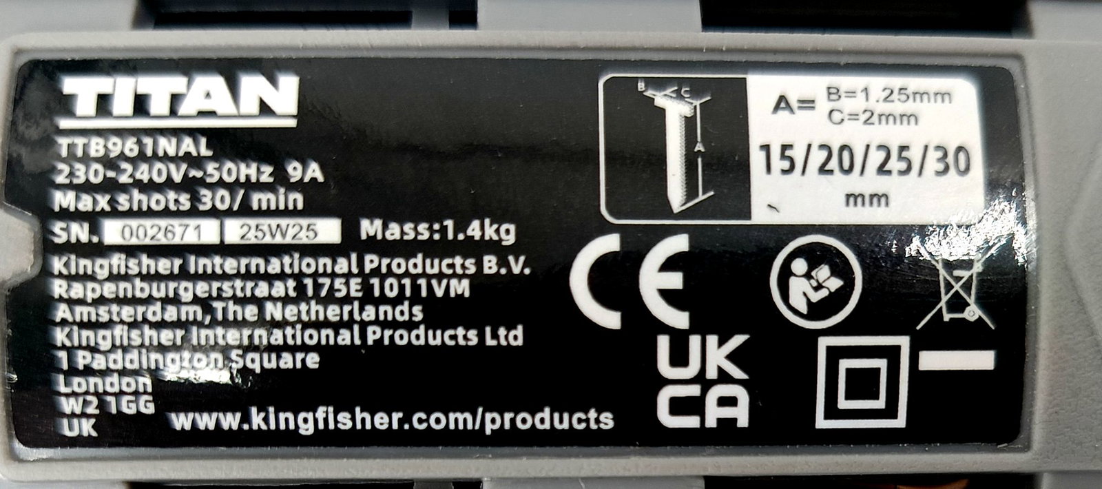 - Gwoździarka / zszywacz elektryczny Titan TTB961NAL.