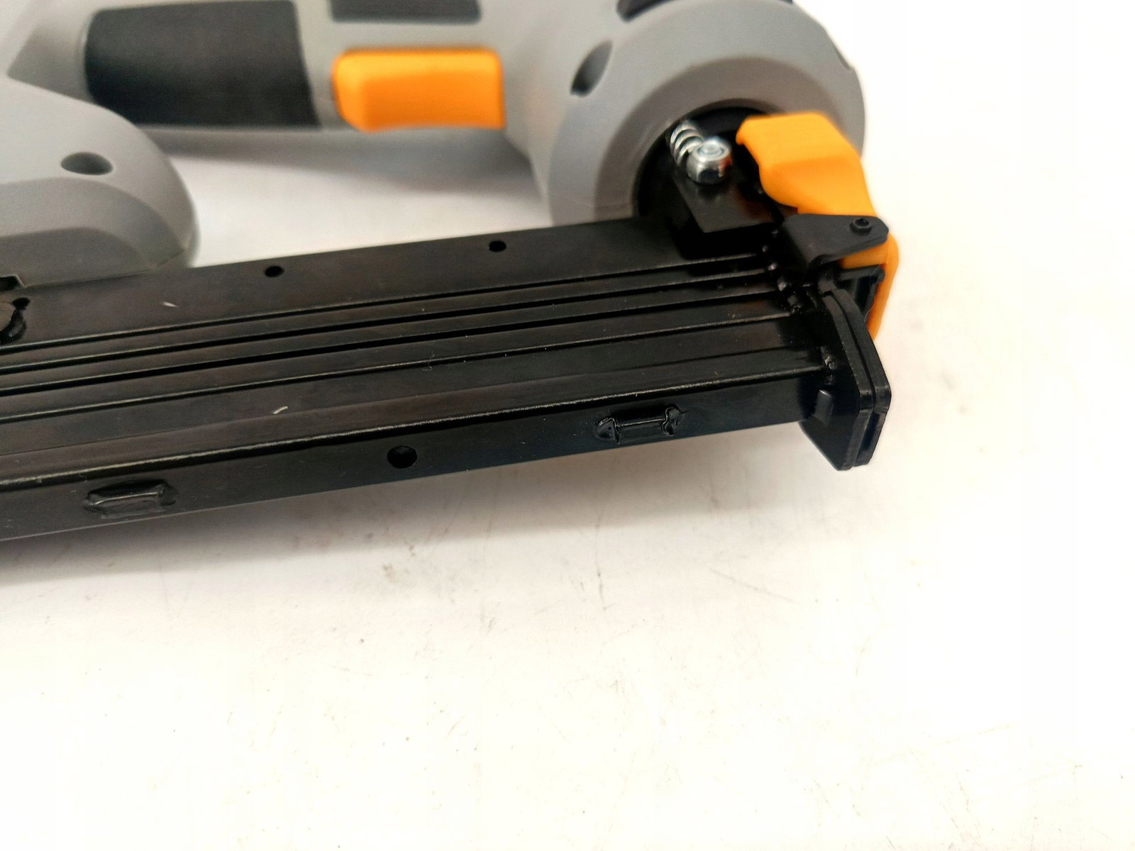 - Proste ładowanie: Magazynek ładowany od tyłu o pojemności 100 sztuk pozwala na sprawną obsługę gwoździ i zszywek.