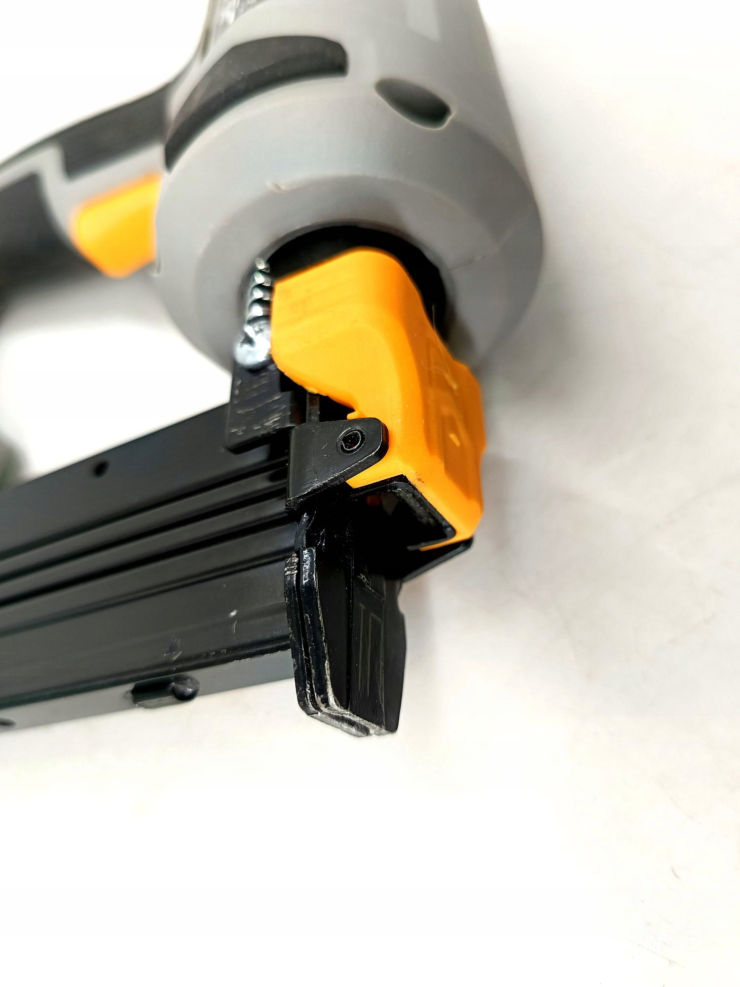 - Proste ładowanie: Magazynek ładowany od tyłu o pojemności 100 sztuk pozwala na sprawną obsługę gwoździ i zszywek.
