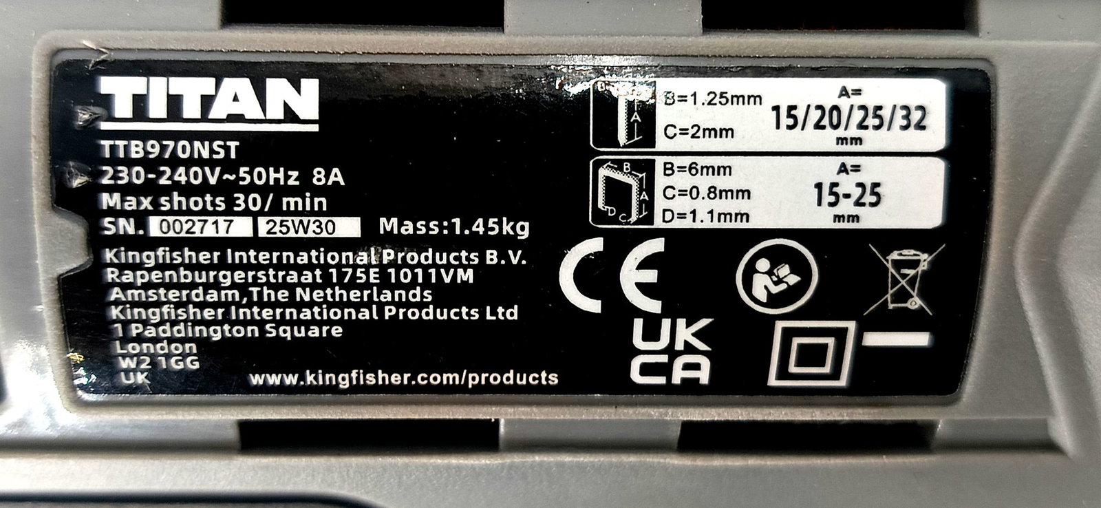 GWOŹDZIARKA ZSZYWACZ ELEKTRYCZNY TITAN TTB970NST
