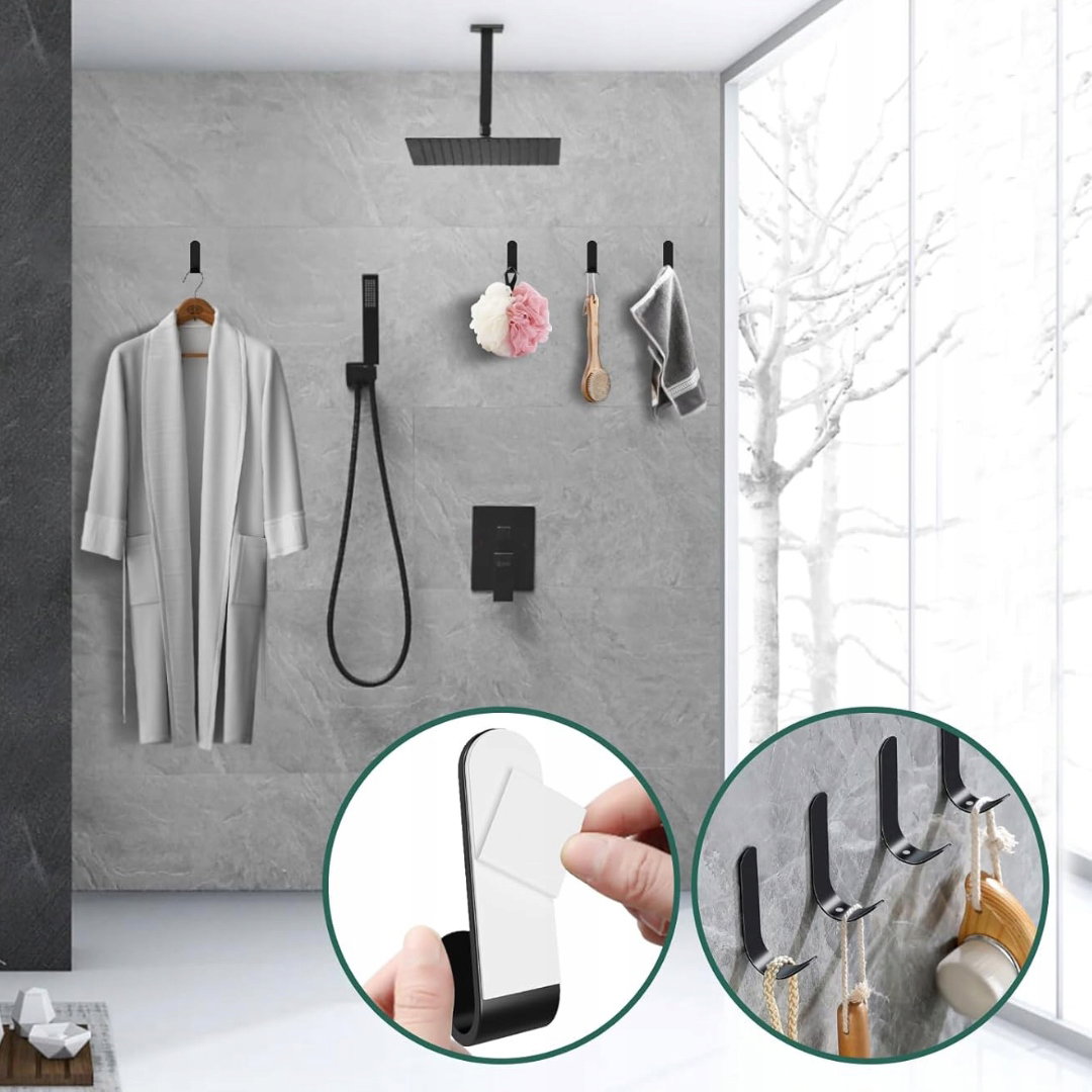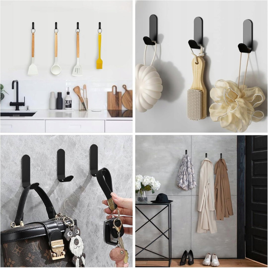 - Szerokie zastosowanie: czarne samoprzylepne haczyki można zamontować w łazience, sypialni, kuchni, przedpokoju czy biurze, idealne do zawieszania ręczników, płaszczy, torebek, kapeluszy, parasoli, szlafroków i wielu innych przedmiotów.