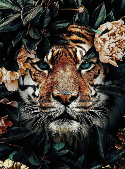 Haft diamentowy Diamond Painting mozaika 5d TYGRYS W KWIATACH 30X40cm