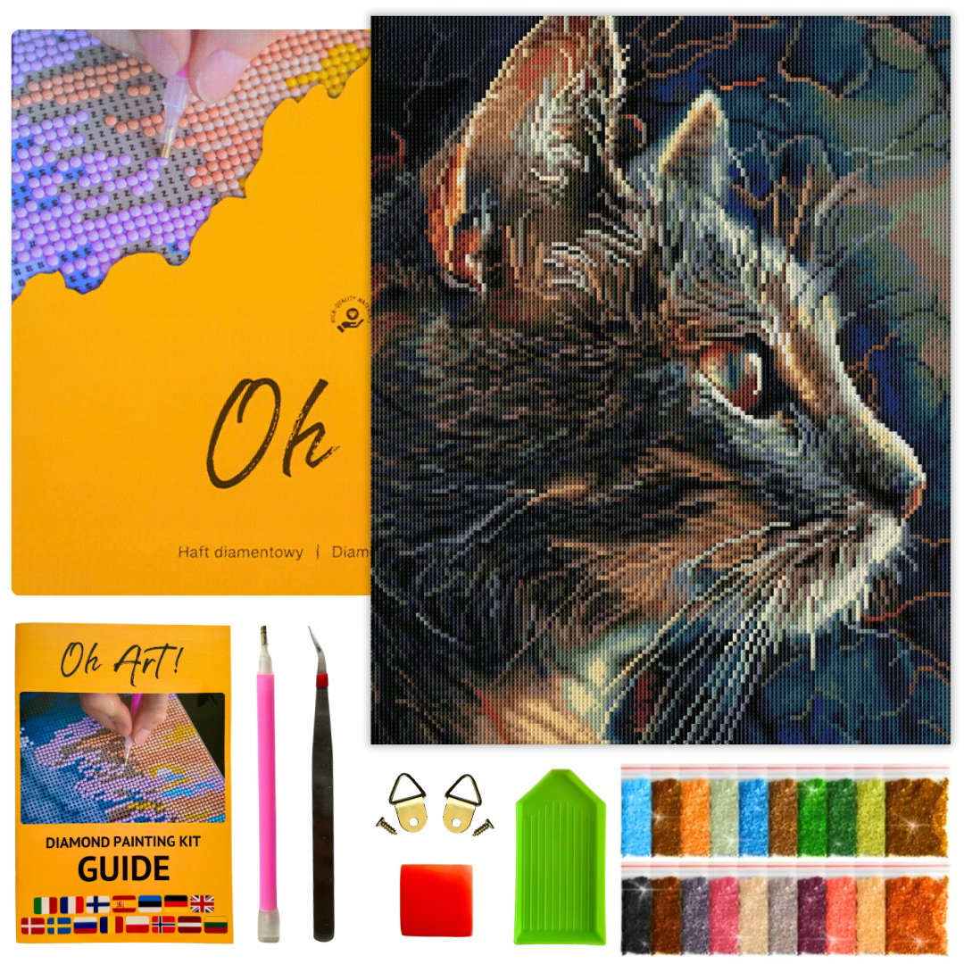 Haft Diamentowy Kot 40x50cm Mozaika 5D Zestaw do wyklejania diamentów OhArt