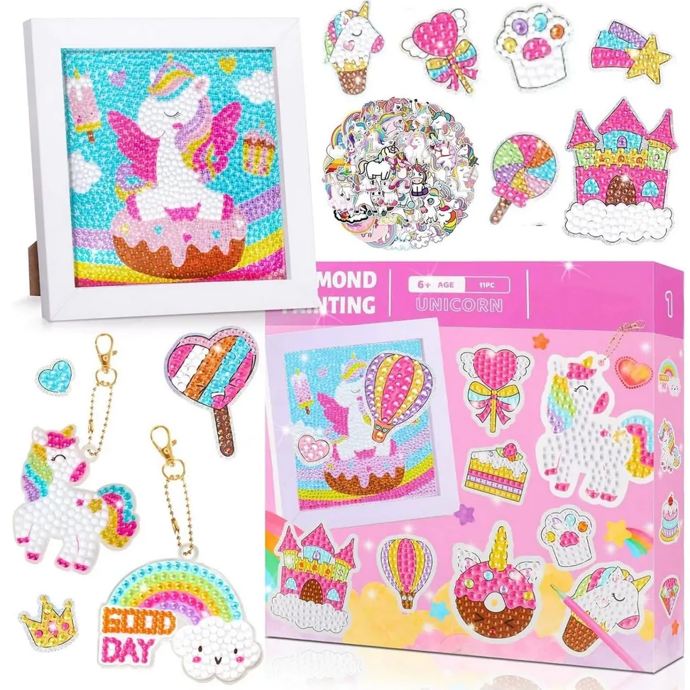 Haft Diamentowy Mozaika Brelok Naklejki Jednorożec Ramka Naklejki Zestaw