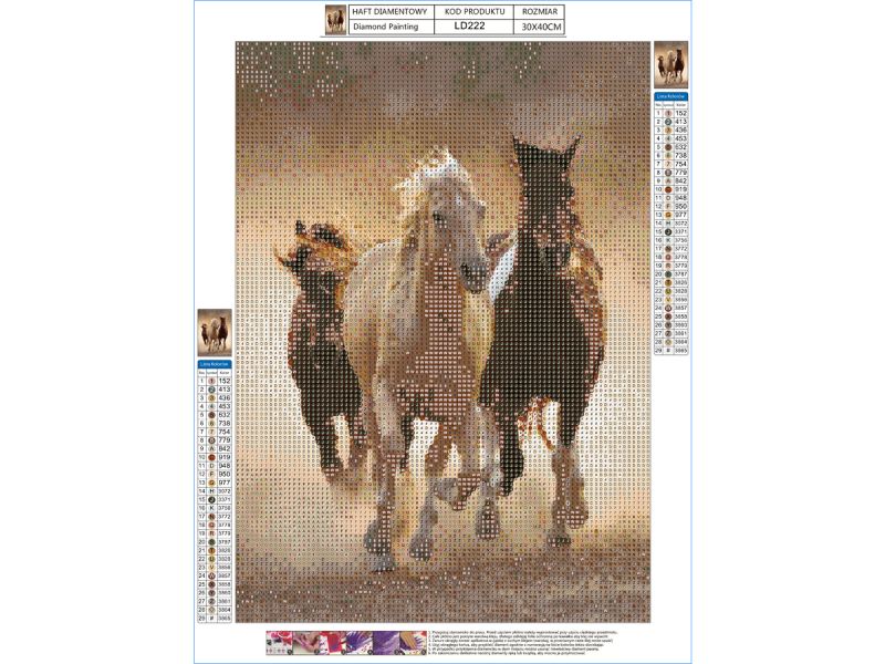 Haft Diamentowy Mozaika Diamentowa Diamond Painting KONIE W GALOPIE 30x40cm