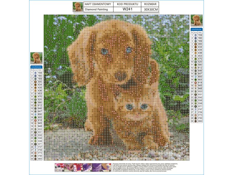 HAFT DIAMENTOWY MOZAIKA DIAMENTOWA PRZYJACIELE SZCZENIAK KOTEK 30X30 CM