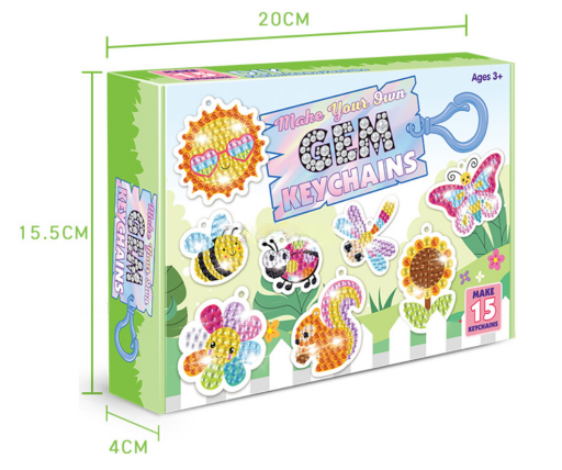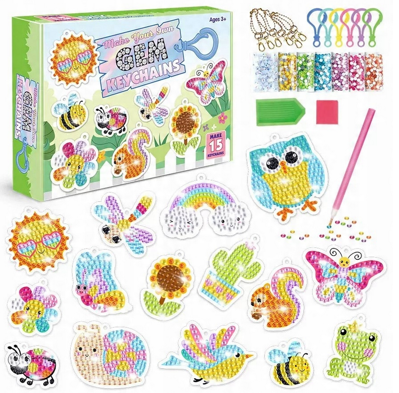 - Efektowne ozdoby: Po ukończeniu projektu powstają efektowne, błyszczące breloczki w kształcie zwierząt i owadów, które dziecko może z dumą przypiąć do plecaka, kluczy, piórnika czy torby. To nie tylko piękna dekoracja, ale także praktyczny gadżet, który podkreśla indywidualny styl każdego młodego twórcy.