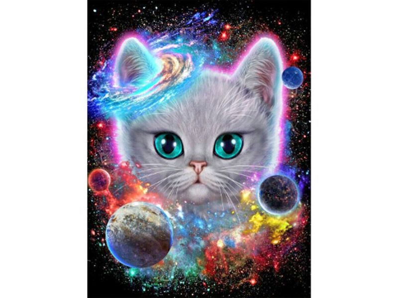 Haft Diamentowy Obraz Mozaika Diamentowa Diamond Painting KOSMICZNY KOT 30x40cm