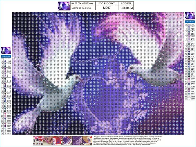 Rozmiar płótna:40 x 30cmWzór:Dwa gołębie - serce