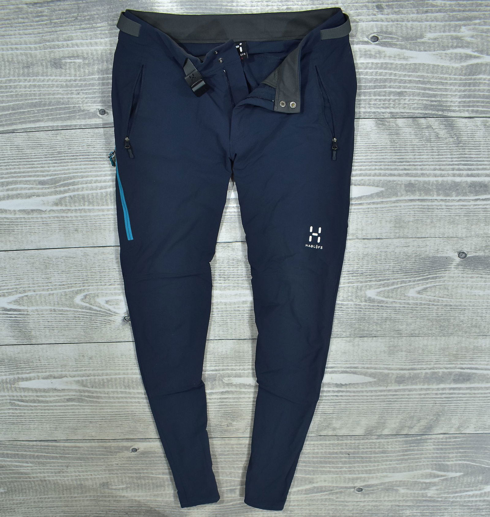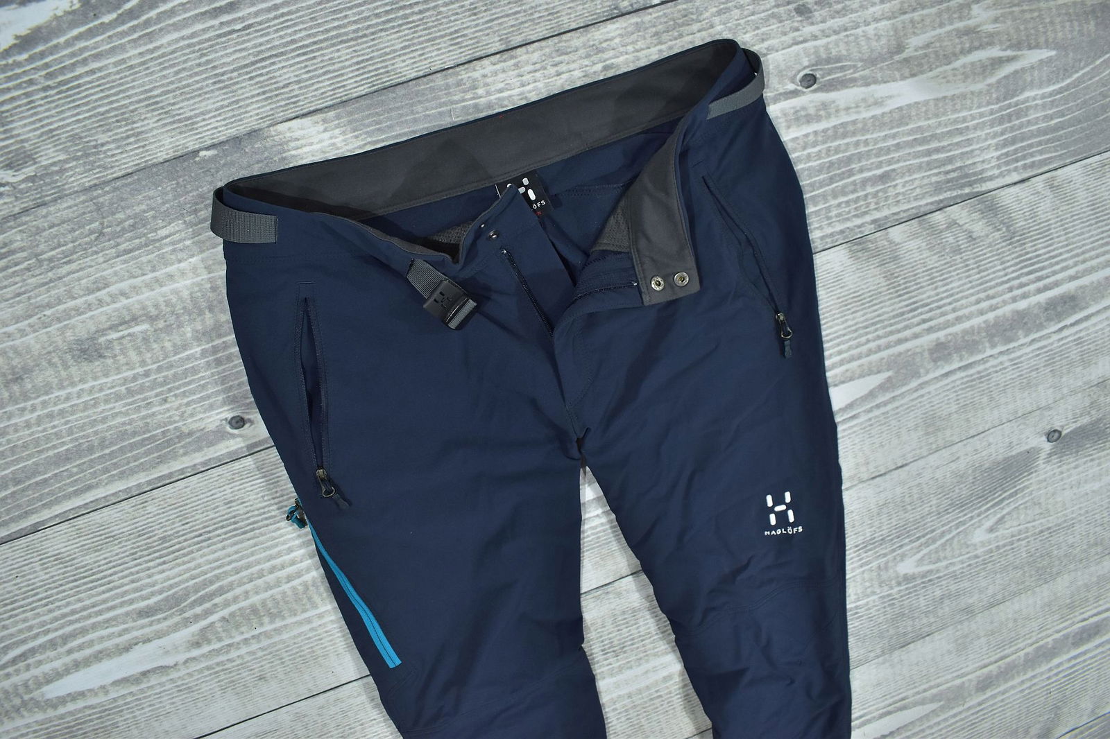 profilowane kolana, regulowany dolny obwód nogawek, szlufki na pasek