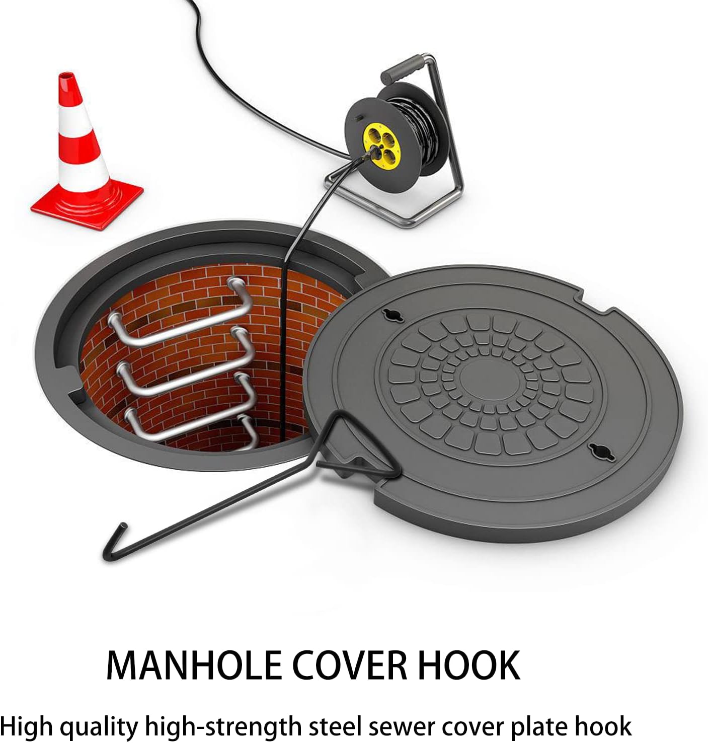 ✅ Hak pokrywy włazu wykonany jest z wysokiej jakości stali nierdzewnej, która jest wytrzymała i trwała i może być używana przez wiele lat. Stal węglowa natryskiwana elektrostatycznie przed korozją i rdzą, wysoka wytrzymałość i twardość.