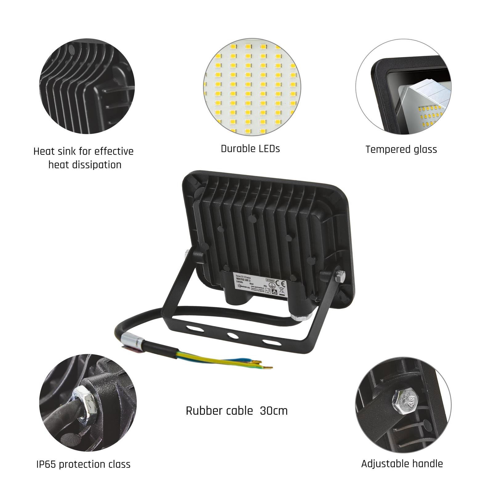 Jedną z największych zalet jest to iż naświetlacz LED 30W posiada dużą wydajność świetlną a przy tym generuje bardzo niewiele ciepła czego nie da się powiedzieć o klasycznych lampach palnikowych.