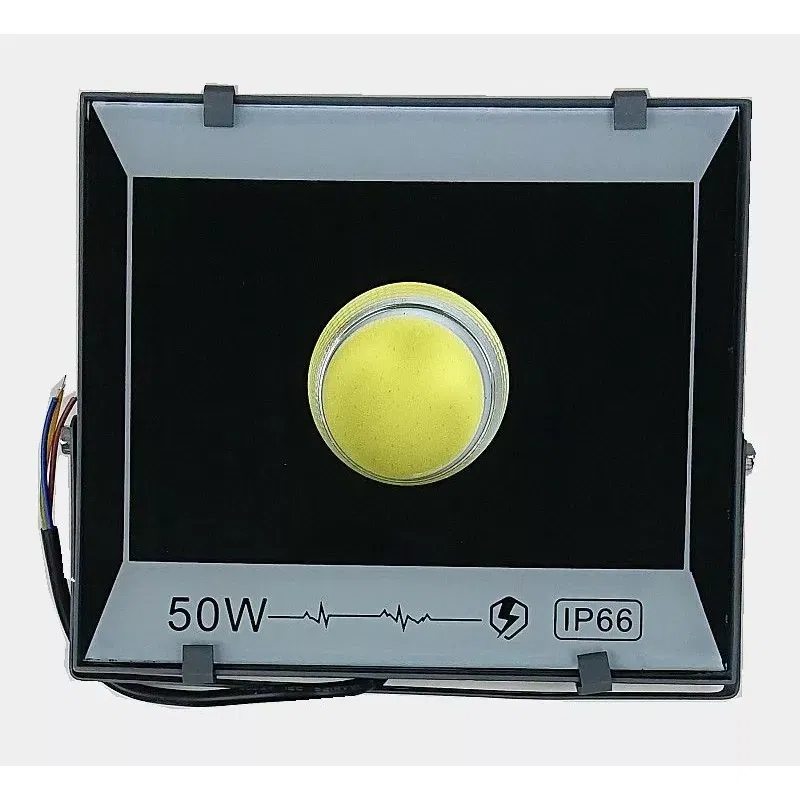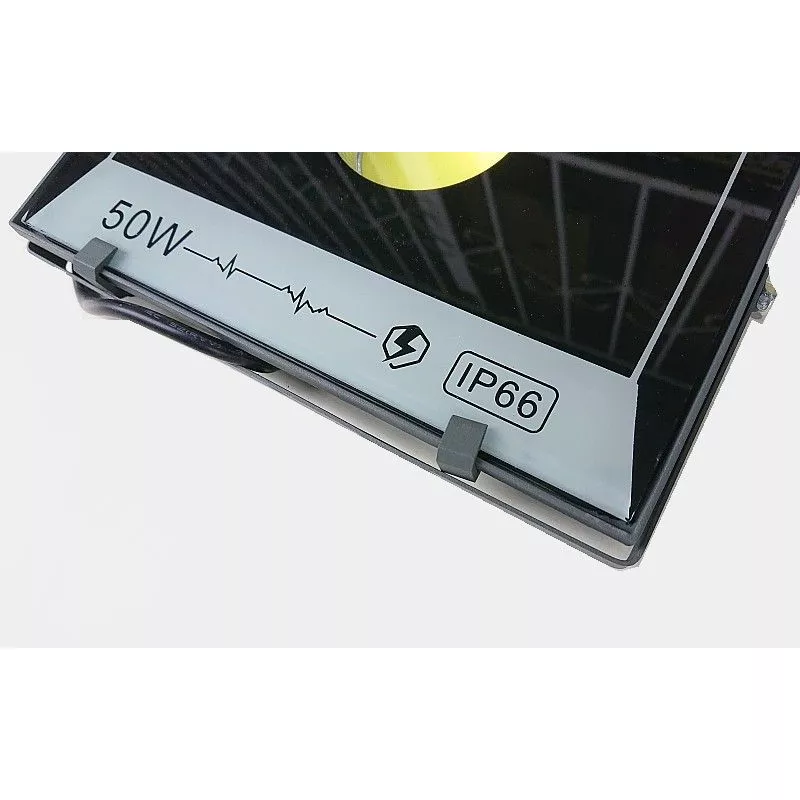 Halogen diodowy 50w/230V/5000lm, 1 moduł led cob 50W. Halogen led jest wodoodporny IP66, barwa światła biała zimna 6000k. Obudowa typu slim. Duży odbłyśnik oraz dioda cob dają jeszcze większy strumień światła co przekłada się na jasność świecenia lampy.