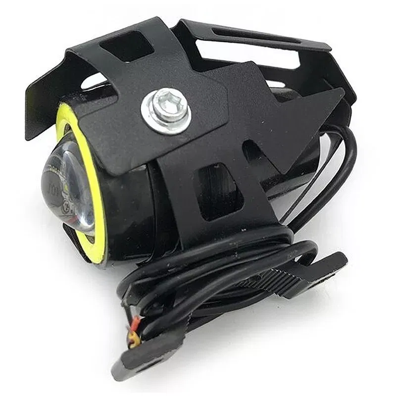 Halogen motocyklowy soczewkowy typ lampa U7 cree led o mocy 5 Wat z białym ringiem, moc świecenia ok.1000 lm temperatura barwowa 6500k (zimna biała) wodoodporny kolor czarny. Dodatkowa lampa halogenowa pozwala poprawić widoczność na drodze. Zastosowanie nowoczesnych lamp przydaje się szczególnie w terenie, gdzie skutecznie wspomaga standardowe lampy motocyklowe. Biały ring jest przydatny podczas jazdy w terenie i miejscach gdzie potrzeba doświetlić drogę tuż przed pojazdem.