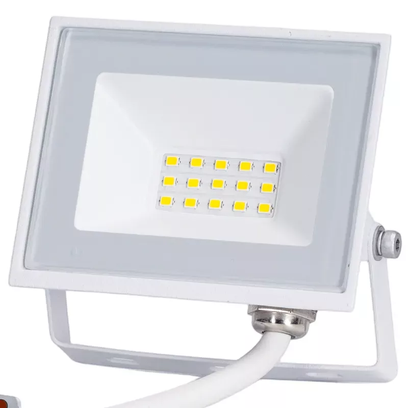 Halogen diodowy w białej obudowie 10w/230V 1800lm 15 ultra jasnych diod led. Lampa led jest wodoodporna IP65, barwa światła biała neutramla 4000k. Płaska obudowa typu slim - 27mm grubości. Współczynnik mocy PF>0,9 - bez obaw o karę w firmie.