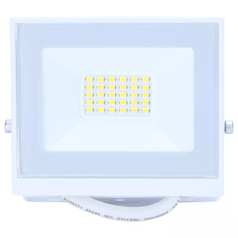 Halogen diodowy w białej obudowie 20w/230V 1800lm 30 ultra jasnych diod led. Lampa led jest wodoodporna IP65, barwa światła neutralna 4000k. Płaska obudowa typu slim - 27mm grubości. Współczynnik mocy PF>0,9.