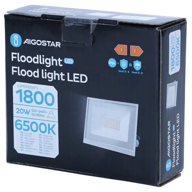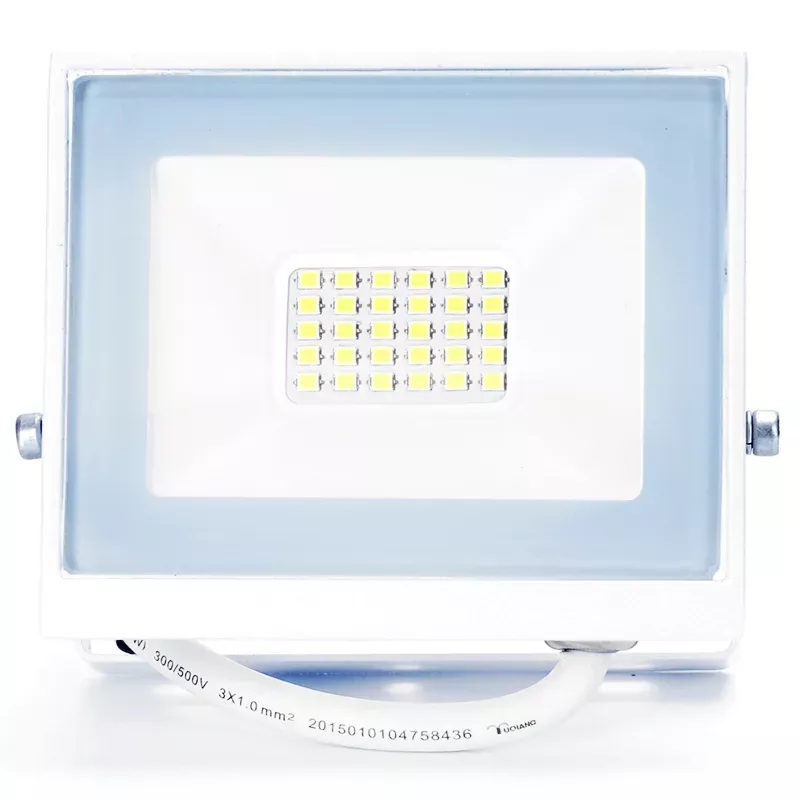 Halogen diodowy w białej obudowie 20w/230V 1800lm 30 ultra jasnych diod led. Lampa led jest wodoodporna IP65, barwa światła biała chłodna 6500k. Płaska obudowa typu slim - 27mm grubości. Współczynnik mocy PF>0,9.