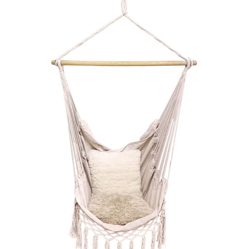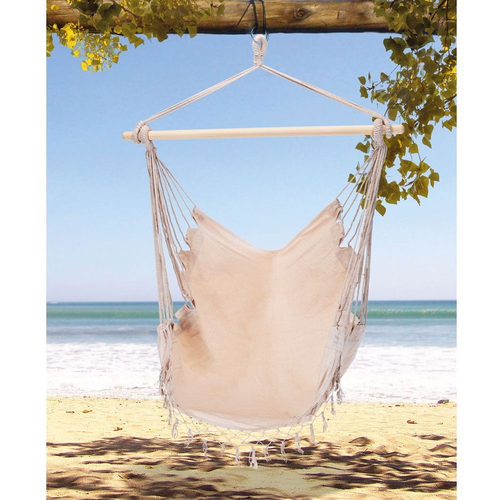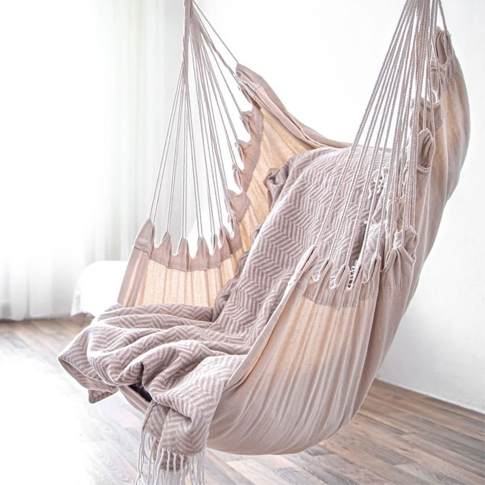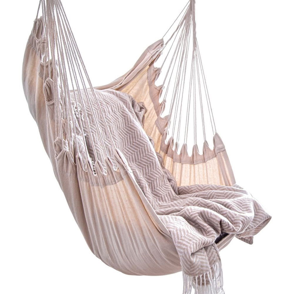 Hamak brazylijski w formie podwieszanego fotela. Solidna konstrukcja i wytrzymały materiał zapewnią komfort użytkowania. Fotel podwieszany jest odpowiednim rozwiązaniem, jeśli nie mamy miejsca na montaż tradycyjnego hamaka, gdyż jest montowany tylko w jednym miejscu. Fotel jest bardzo wygodny i zapewni długie godziny relaksu w ogrodzie, na tarasie, czy balkonie. Fotel można zamontować również w salonie, sypialni a nawet pokoju dziecięcym.