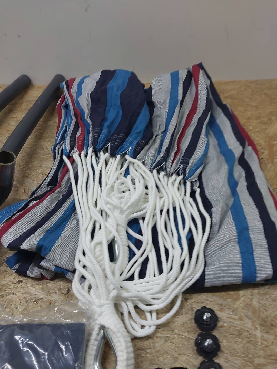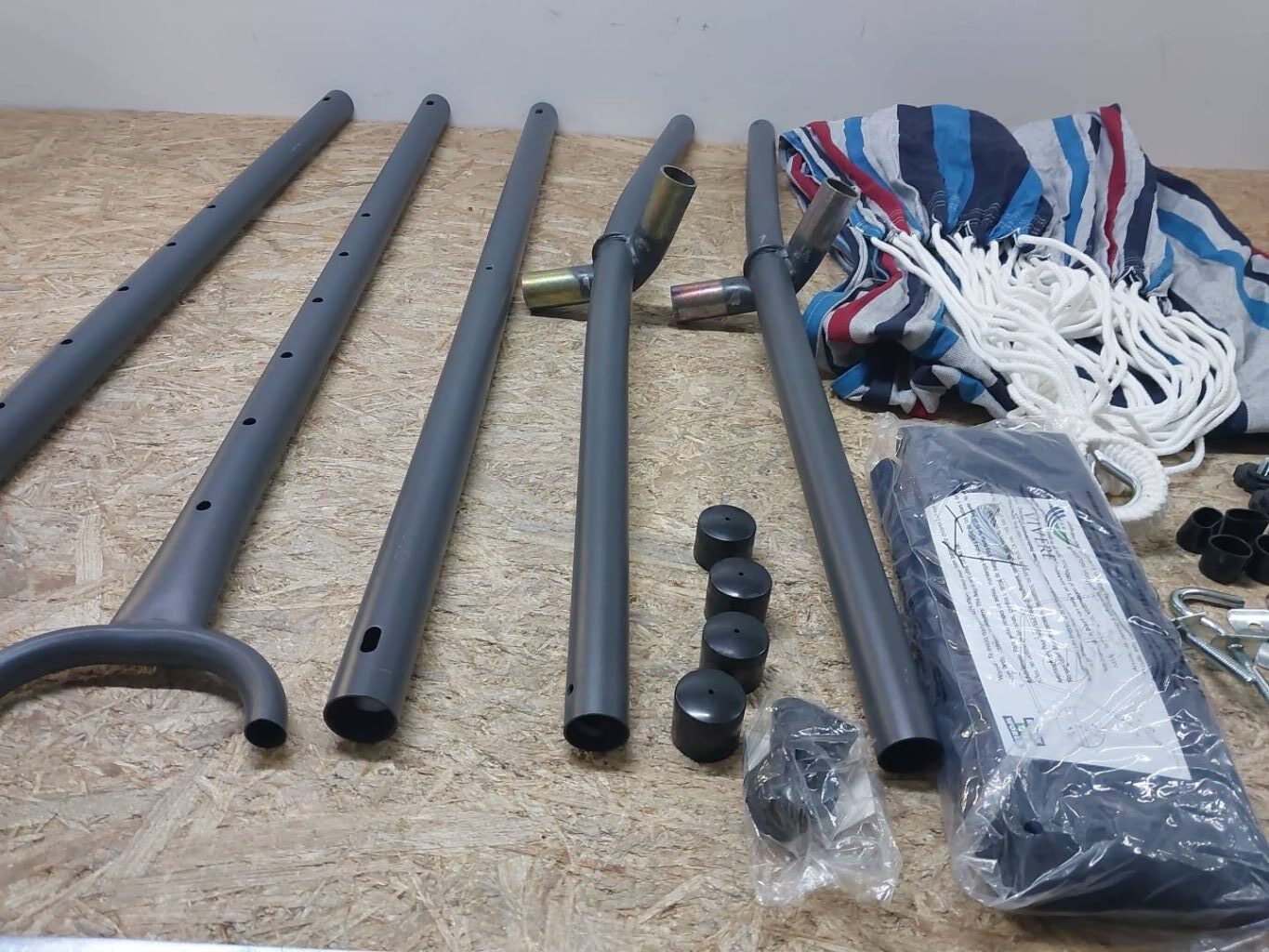 W zestawie znajduje się solidny stojak, który eliminuje potrzebę mocowania hamaka na drzewach lub ścianach, co zwiększa komfort użytkowania oraz bezpieczeństwo.