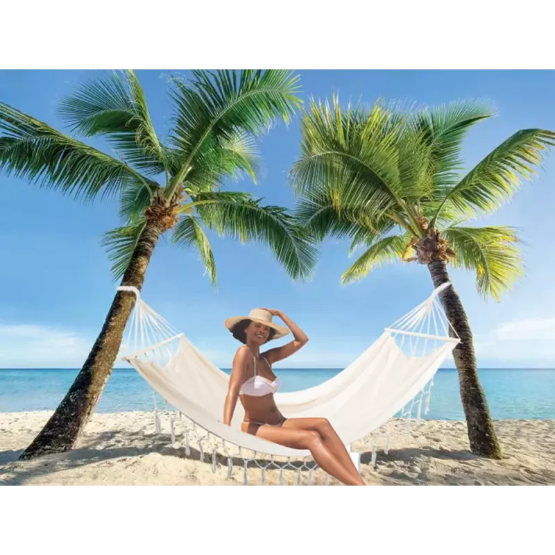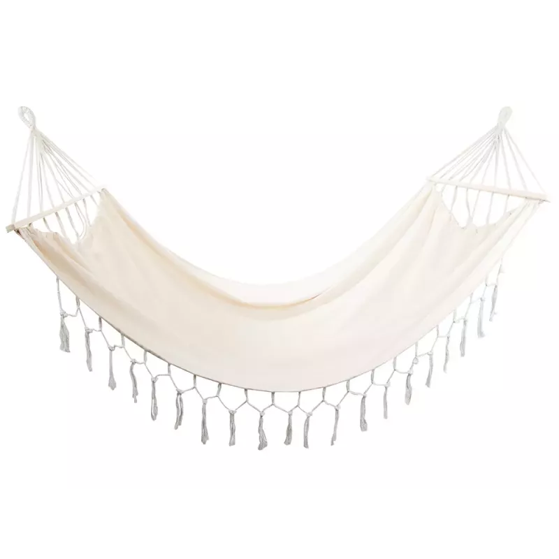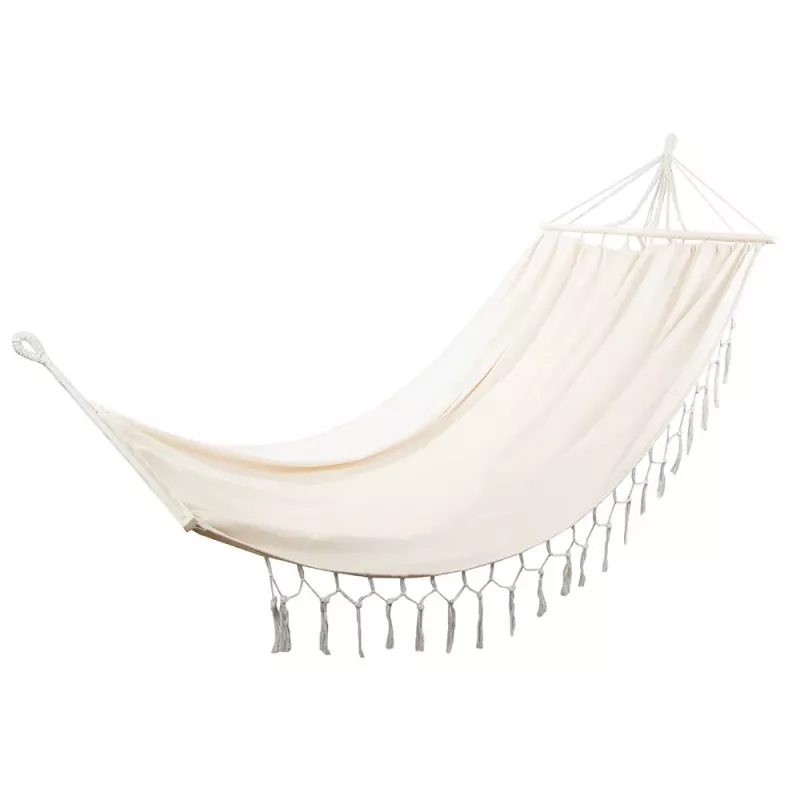 Hamak ogrodowy to idealna rzecz dla wszystkich, którzy lubią spędzać wolne chwile na łonie natury. Wystarczy przywiązać dwa końce hamaka do drzew lub wytrzymałych słupków i cieszyć się wygodą. Można w nim np. czytać książkę delikatnie się kołysząc w miękkim hamaku. Wykonany jest z wytrzymałego