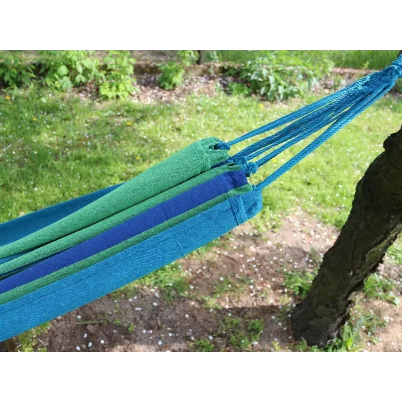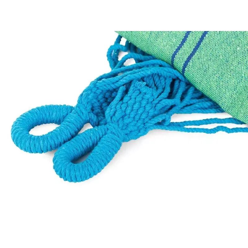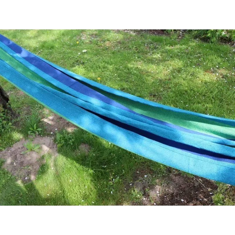 Wykonany jest z wytrzymałego materiału, podobnie jak grubo plecione sznury. Wszystko to sprawia, że hamak jest wytrzymały oraz przepuszcza powietrze, dzięki czemu używanie go będzie bardzo przyjemne.