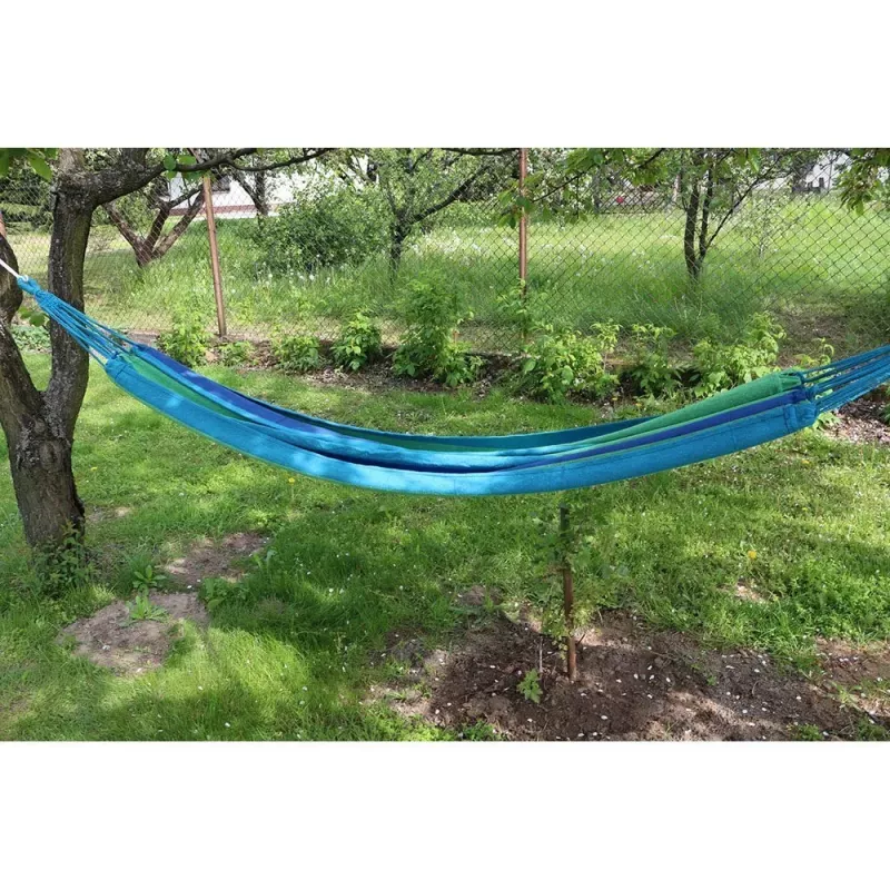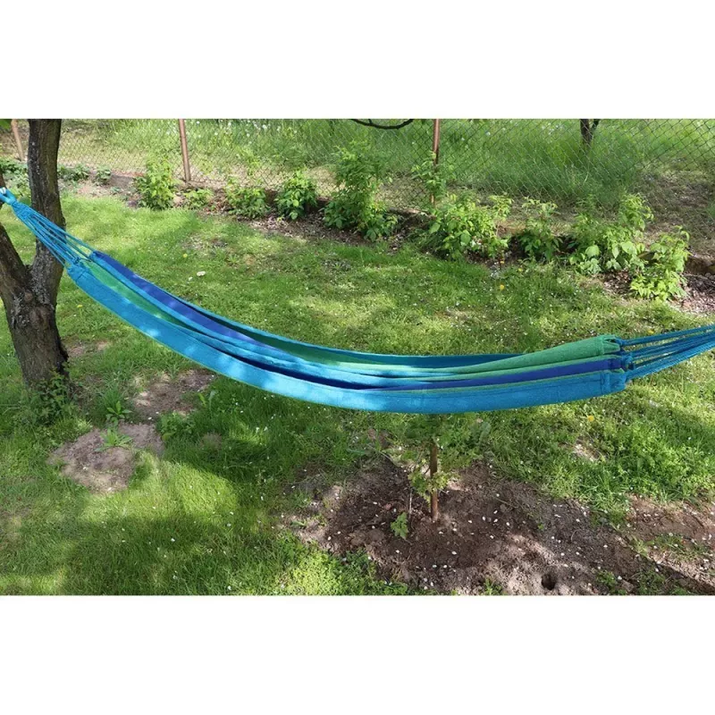 Hamak ogrodowy to idealna rzecz dla wszystkich, którzy lubią spędzać wolne chwile na łonie natury. Wystarczy przywiązać dwa końce hamaka do drzew lub wytrzymałych słupków i cieszyć się wygodą. Do zestawu dołączone są dwa sznurki dzięki którym możemy zamocować nasz hamak. Można w nim np. czytać książkę delikatnie się kołysząc w miękkim hamaku.