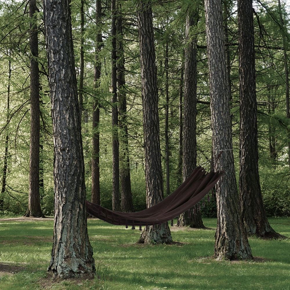 WYTRZYMAŁY MATERIAŁ - Wykonany z trwałej i wytrzymałej tkaniny. Połączenie 60% bawełny i 40% poliestru sprawi, że materiał jest wygodny, a zarazem odporny na uszkodzenia. Hamak jest w brązowym kolorze.