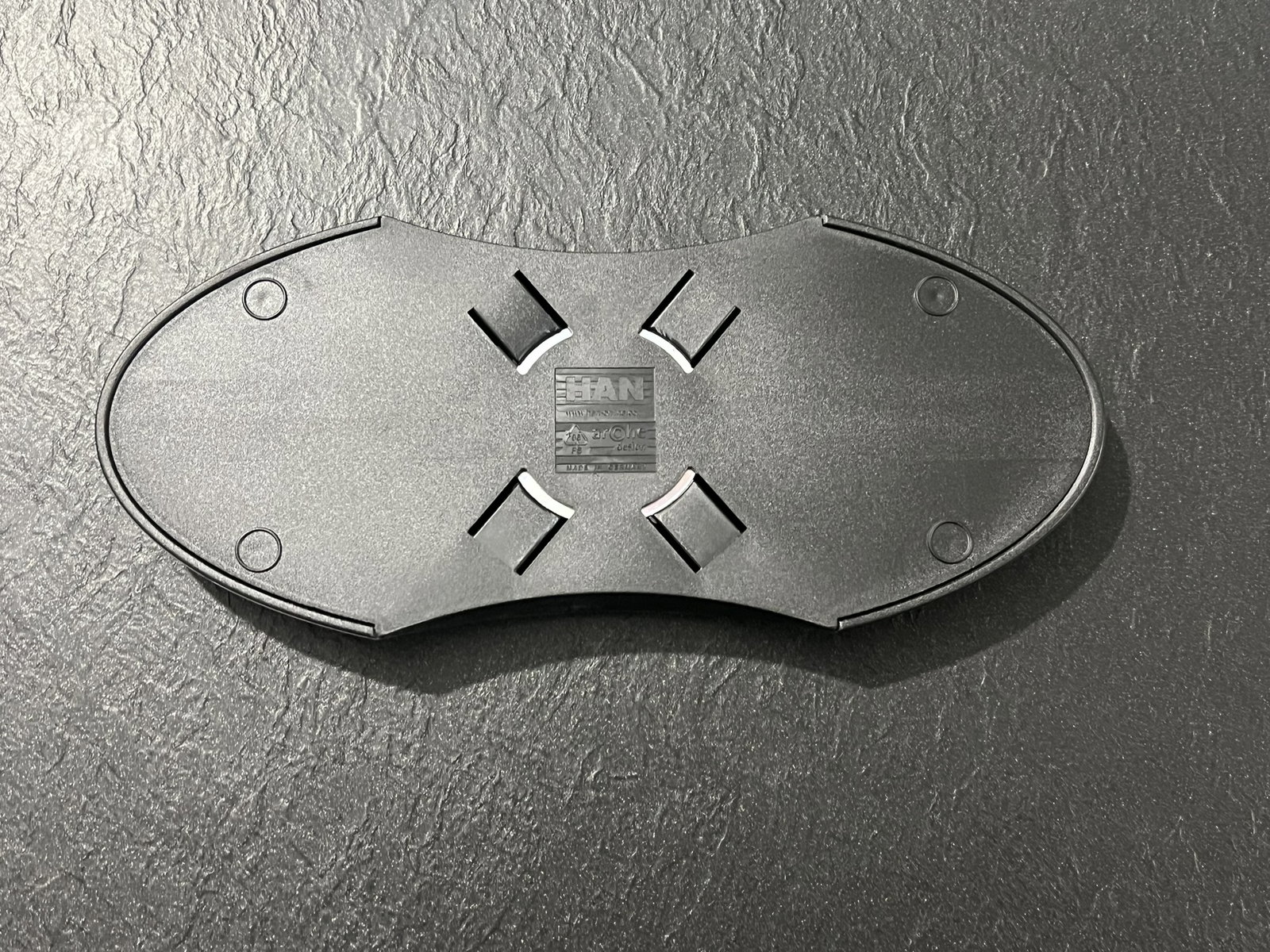 Na spodniej stronie tacy biurkowej znajdują się antypoślizgowe, przyjazne dla materiału gumowe wypustki, które chronią przed zarysowaniami i zapewniają stabilność
