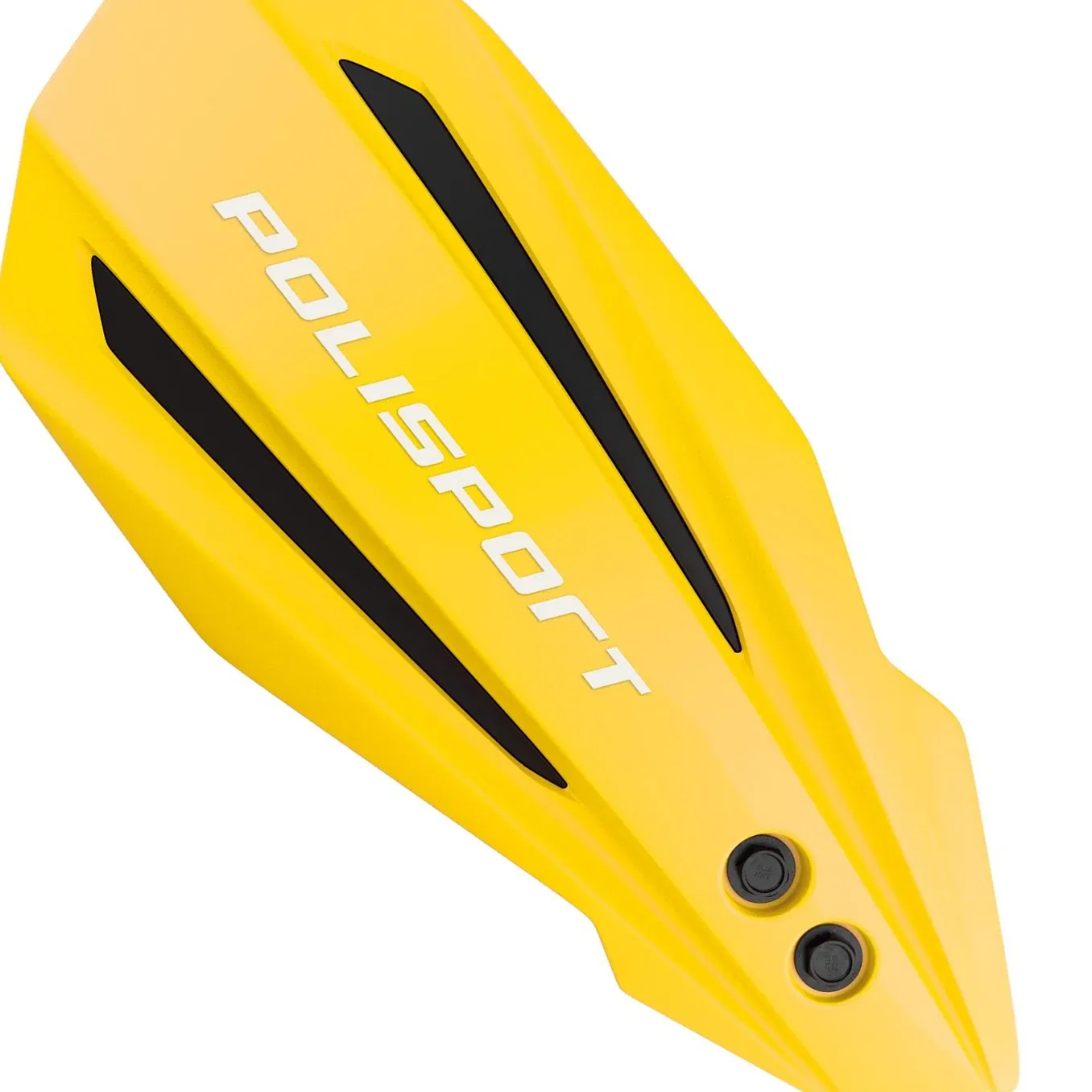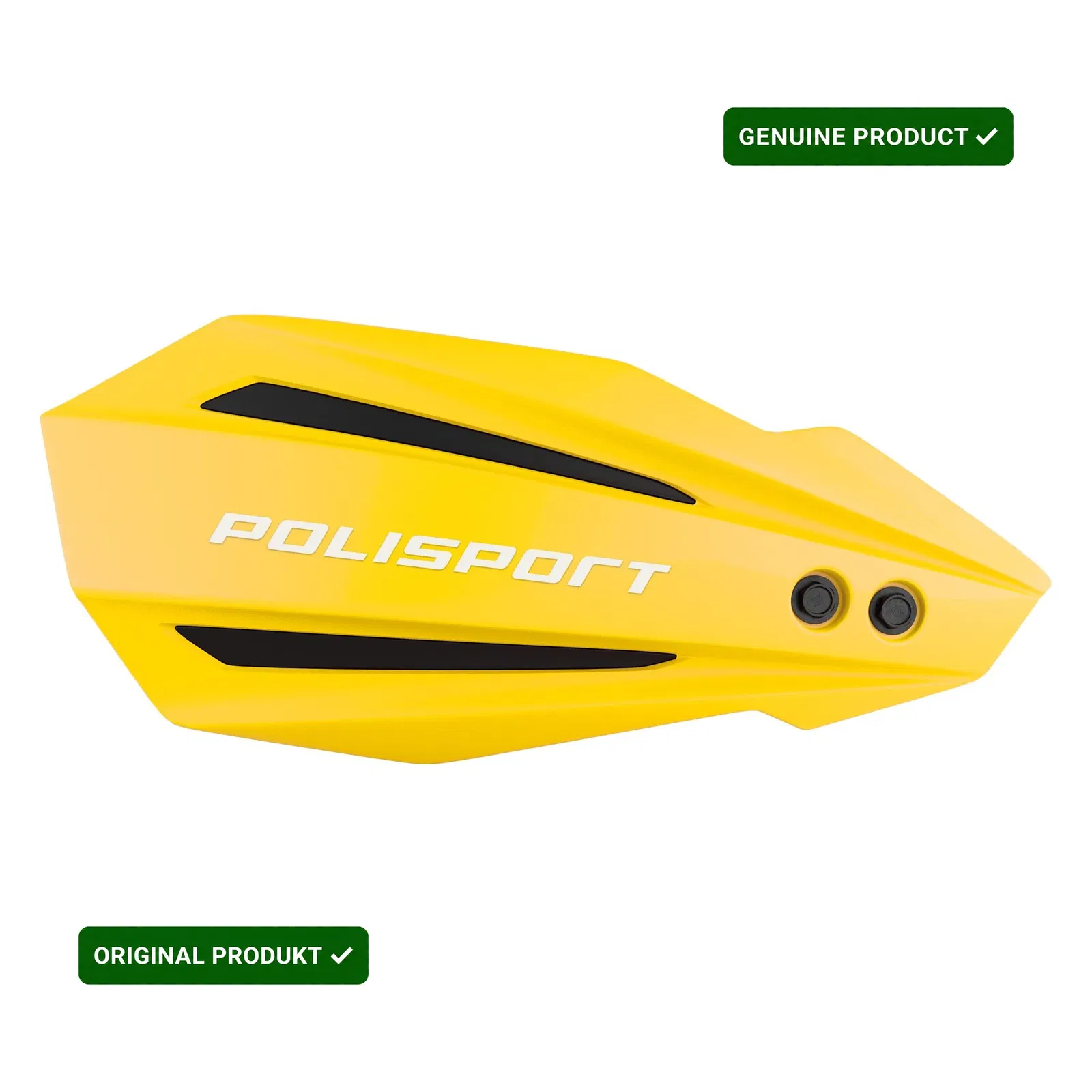 Osłony rąk Polisport Bullit to wytrzymałe handbary zaprojektowane do ochrony dłoni i dźwigni motocyklisty. Wyposażone są w uniwersalny zestaw montażowy, kompatybilny z kierownicami o średnicy 22 mm i 28 mm. Produkt w kolorze żółtym, dostarczany w opakowaniu zastępczym.