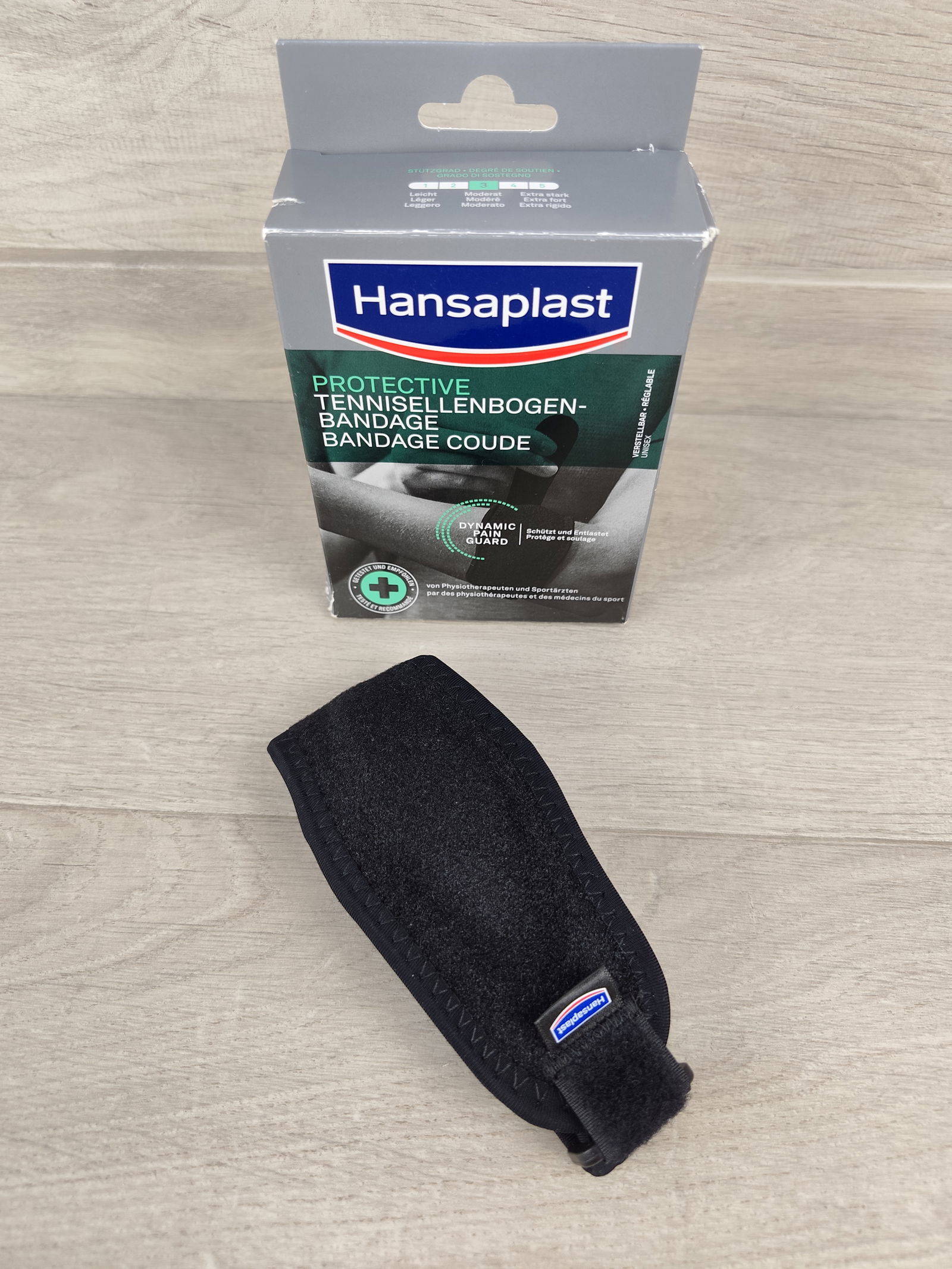 💪 Hansaplast Protective Tennisellenbogen‑Bandage to profesjonalna, regulowana opaska na łokieć, która zapewnia ukierunkowany ucisk i wsparcie 360° przy dolegliwościach takich jak łokieć tenisisty, łokieć golfisty czy przeciążenia ścięgien przedramienia. Dzięki technologii Dynamic Pain Guard opaska pomaga zmniejszyć ból, stabilizuje okolice ścięgna i wspiera naturalny ruch ramienia podczas aktywności.