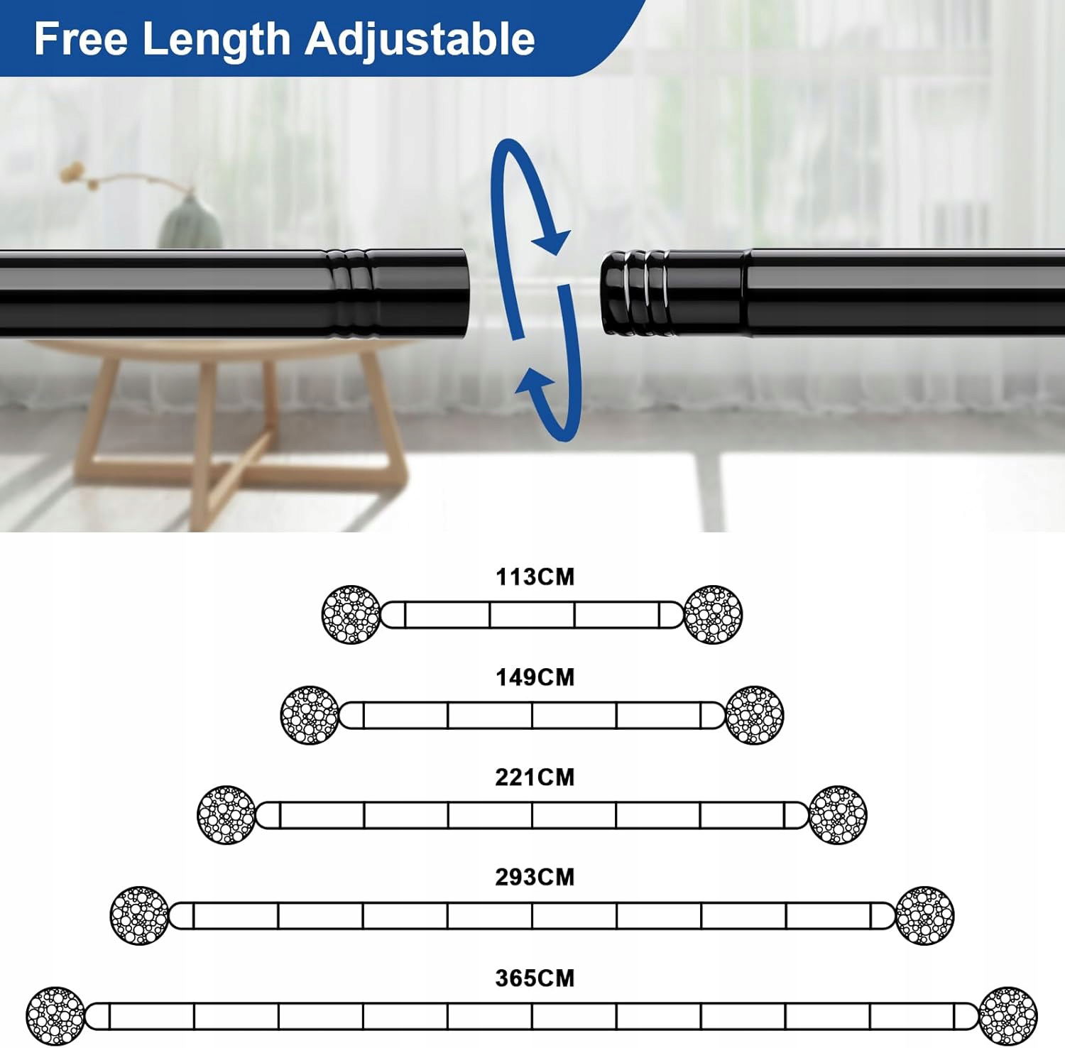 Karnisz można łatwo dostosować do szerokości okna, wybierając długość od 80 do 135 cm.