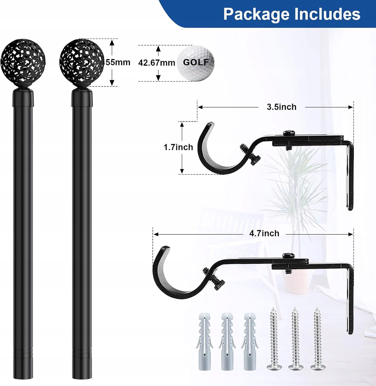 2 rurki zakończone kulistymi ozdobami (długość każda: 42 cm).