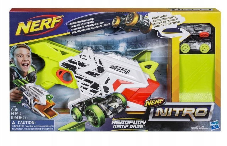 Wyrzutnia Aerofury Ramp Rage + 2 piankowe samochody. Dołącz do ekscytującego wyścigu NERF NITRO z zestawem AeroFury Ramp Rage! Daj się ponieść prędkości i efektownym kraksom! Zestaw AeroFury posiada w pełni zmotoryzowaną wyrzutnię NITRO, która z łatwością wystrzeli oba (dołączone do zestawu) piankowe samochodziki.
