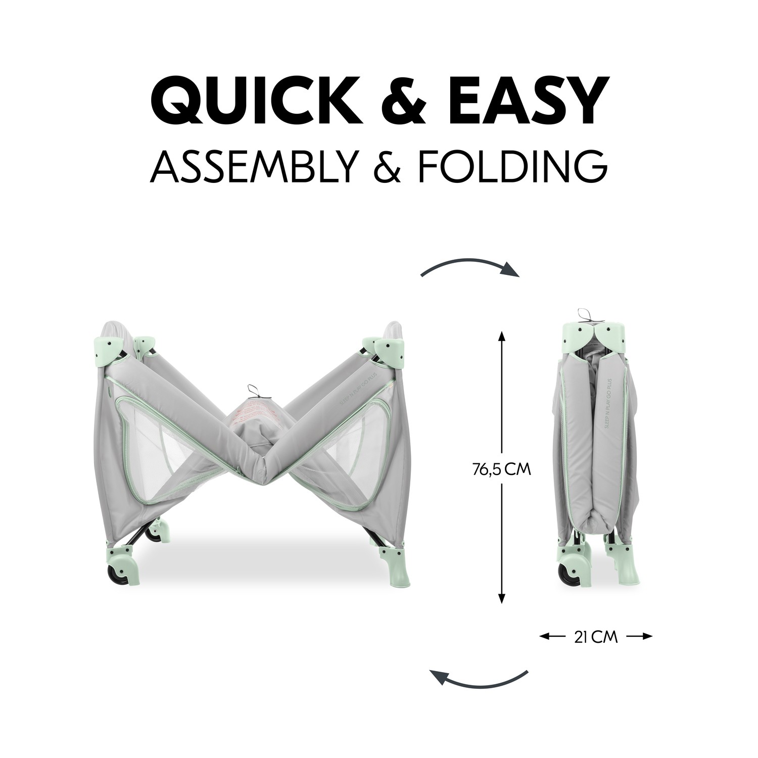 Potrzebujesz łóżeczka turystycznego, które można szybko rozłożyć? Specjalny mechanizm łóżeczka Sleep N Play Go Plus ułatwia to zadanie.