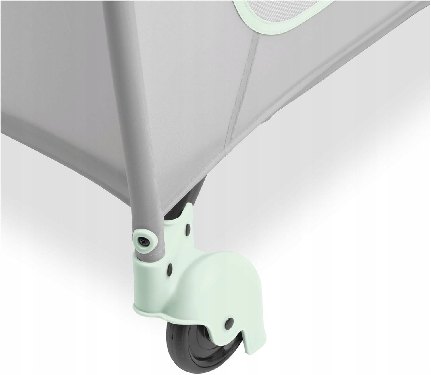 Na kółkach: Możesz przesuwać łóżeczko Sleep N Play Go Plus z jednego pokoju do drugiego lub ciągnąć je za sobą po złożeniu. Można go przechowywać w dołączonej torbie transportowej, aby zaoszczędzić miejsce.