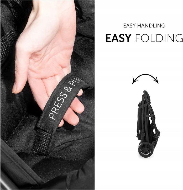 Kompaktowe składanie – ten wózek składa się kompaktowo tylko jedną ręką, pasuje do małych samochodów; ponadto przednie koła są obrotowe i zamykane