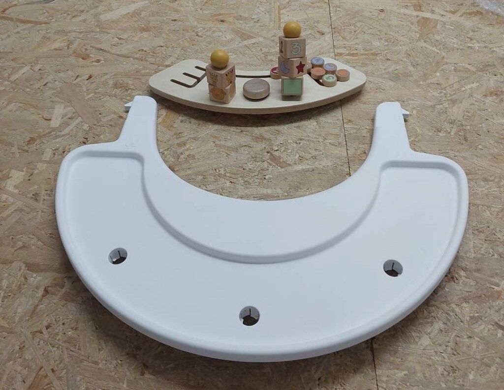 SZYBKI MONTAŻ: Po prostu przymocuj tackę na wysokie krzesełko Hauck do przedniego drążka wysokiego krzesełka i zabezpiecz element zabawowy drewnianą śrubą, aby nic nie wypadło