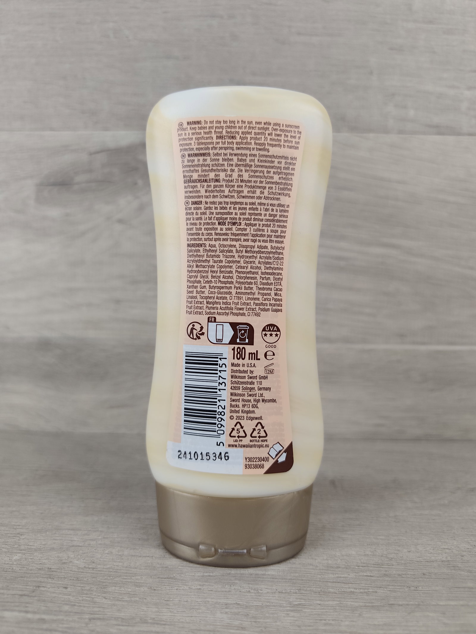 🌺 Hawaiian Tropic Hydrating Protection SPF 50 to nawilżający balsam do opalania o lekkiej, beztłuszczowej formule, który zapewnia wysoką ochronę UVA/UVB oraz aż 12 godzin nawilżenia. Wzbogacony o masło shea i ekstrakty owocowe, pielęgnuje skórę, pozostawiając ją gładką, miękką i przyjemnie pachnącą tropikalnym aromatem.