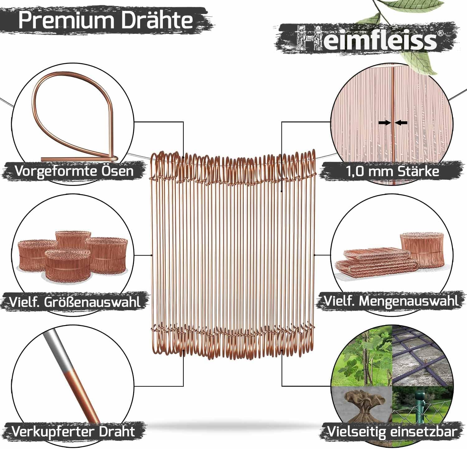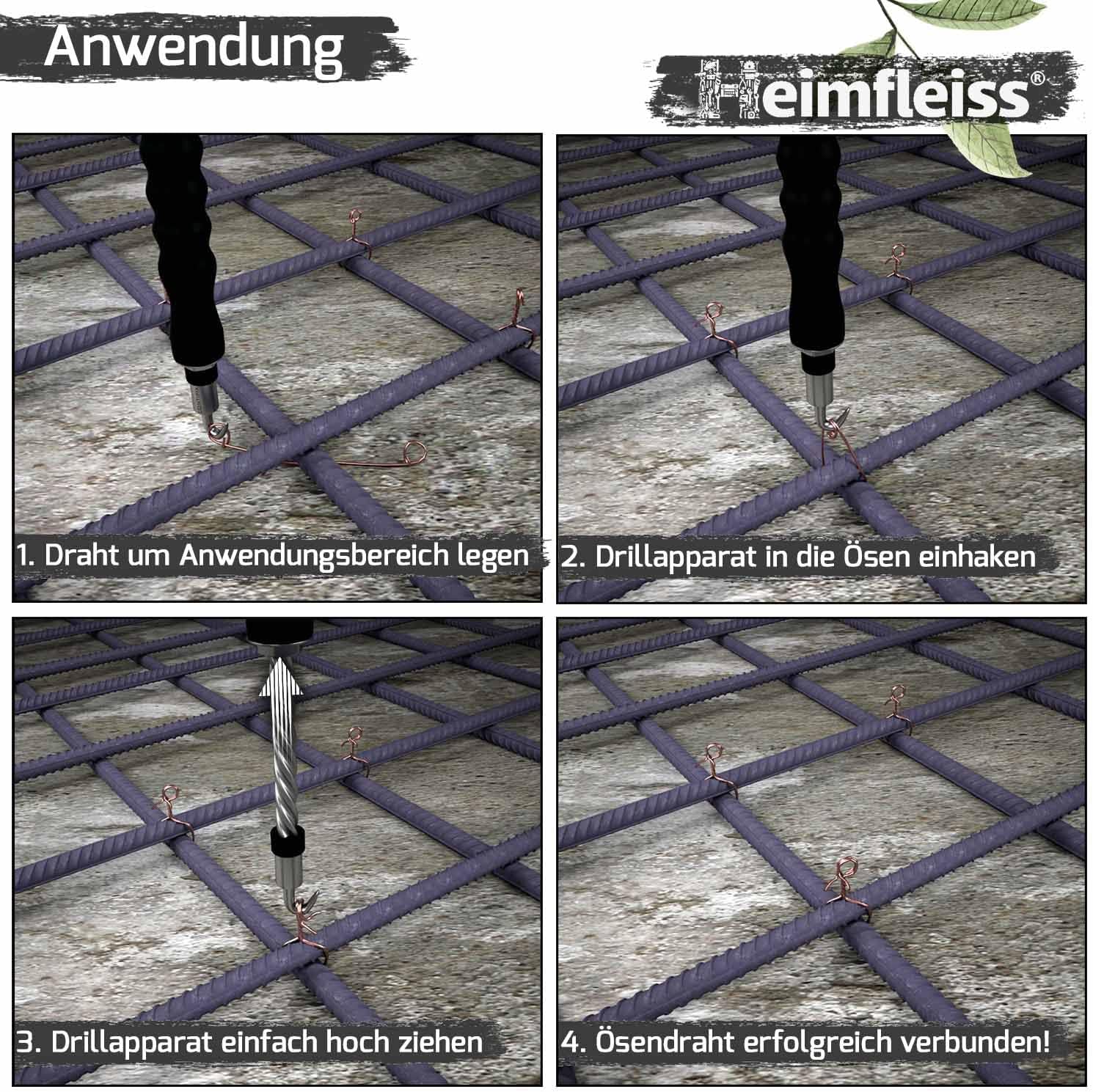 Heimfleiss® Drillapparat Driller + miedziany drut palenisko 1,0 x 100-160 mm (250 szt.) - wysokiej jakości zestaw składający się z wiązań drucianych szczypce i drutu wiążącego zamknięcie workowe
