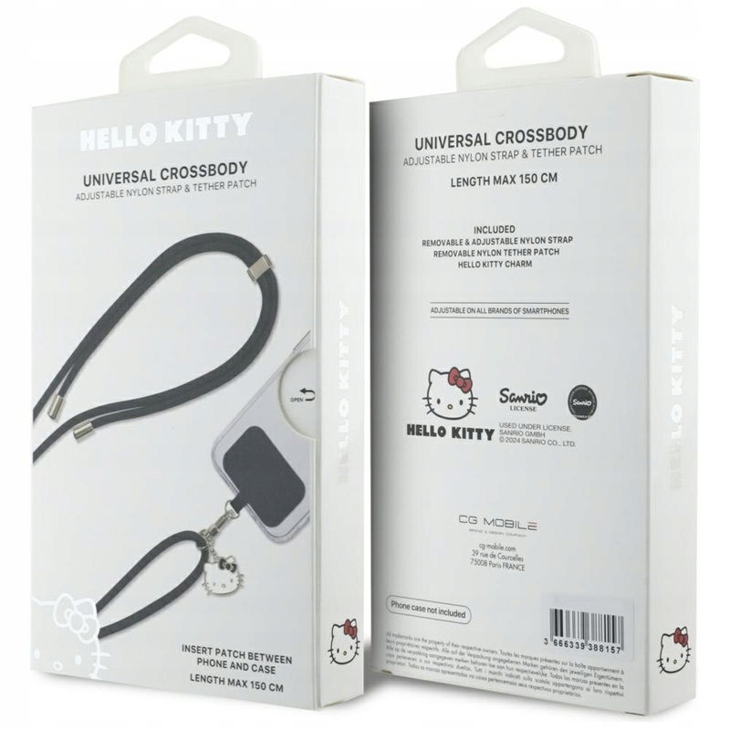 Hello Kitty Patch & Kitty Head Charm - Uniwersalny pasek / smyczka do telefonu (czarny)