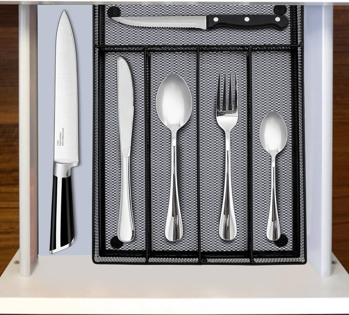 Pojemnik na sztućce Herogo z 5 przegródkami zapewnia dużo miejsca na sztućce i jest to idealne rozwiązanie, aby utrzymać sztućce w porządku, 31,8 x 23,7 x 5 cm, bez problemu zmieści się w większości szuflad