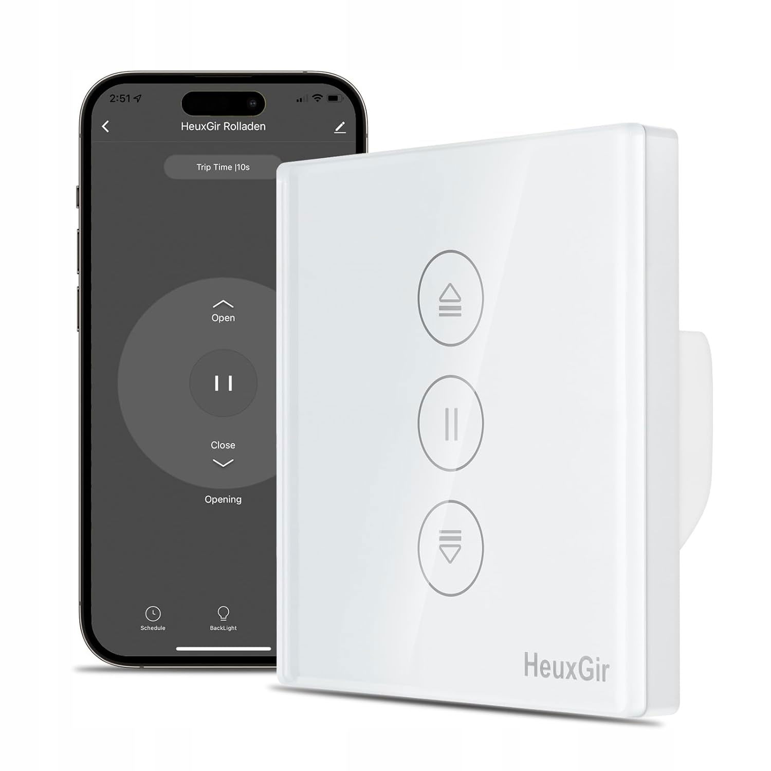 HEUXGIR Programator czasowy do rolet WiFi, inteligentny przełącznik żaluzji ze sterowaną diodą LED, wymaga przewodu zerowego, kompatybilny z aplikacją Alexa/Google Home/Smart Life App 1 szt