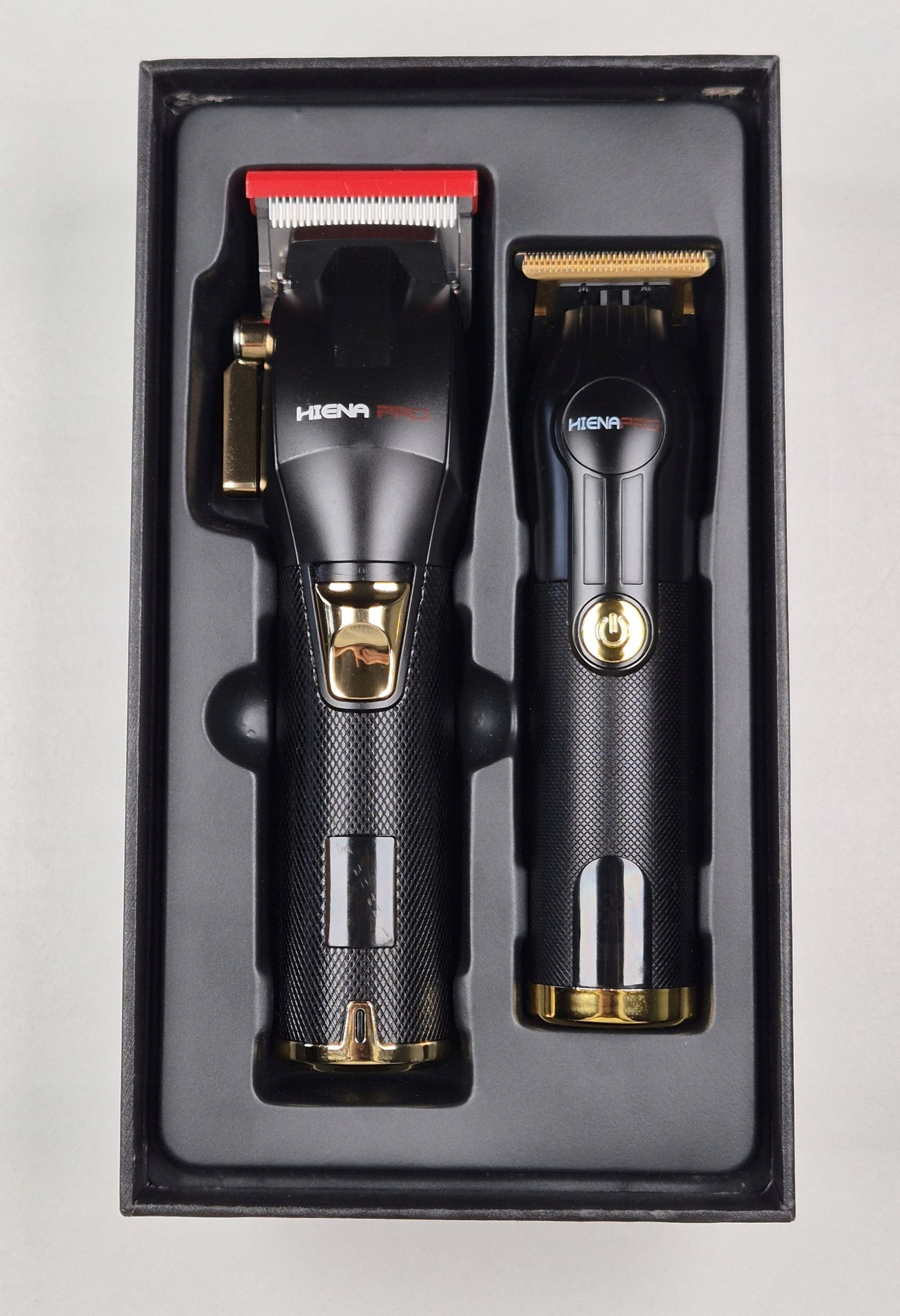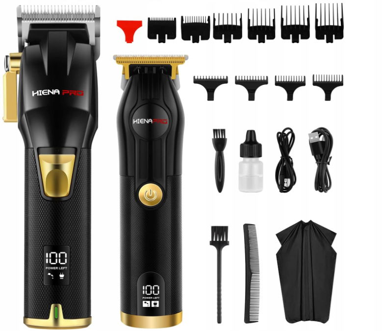 HIENA PRO – Profesjonalny zestaw maszynki do strzyżenia męskich włosów z wyświetlaczem LED (czarno-złoty)