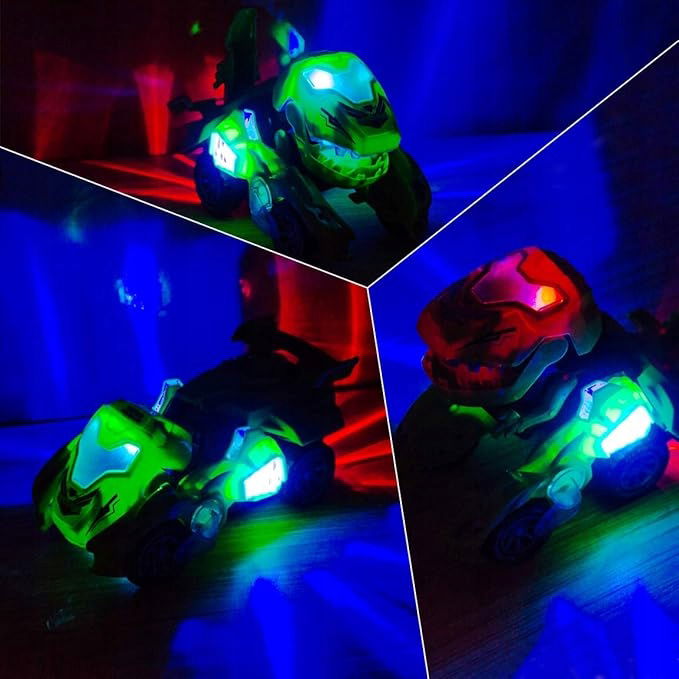 � 【Światło i muzyka LED 3D】 Ten przekształcalny samochód LED z dinozaurem można oświetlić w wielu miejscach, a reflektory są dostrojone do rytmu muzyki. Fajne światła i realistyczny dźwięk zapewniają dzieciom najbardziej autentyczne wrażenia.