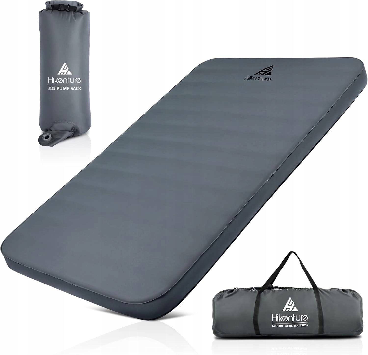 HIKENTURE komfortowa karimata samopompująca się szara 198x132 cm z torbą