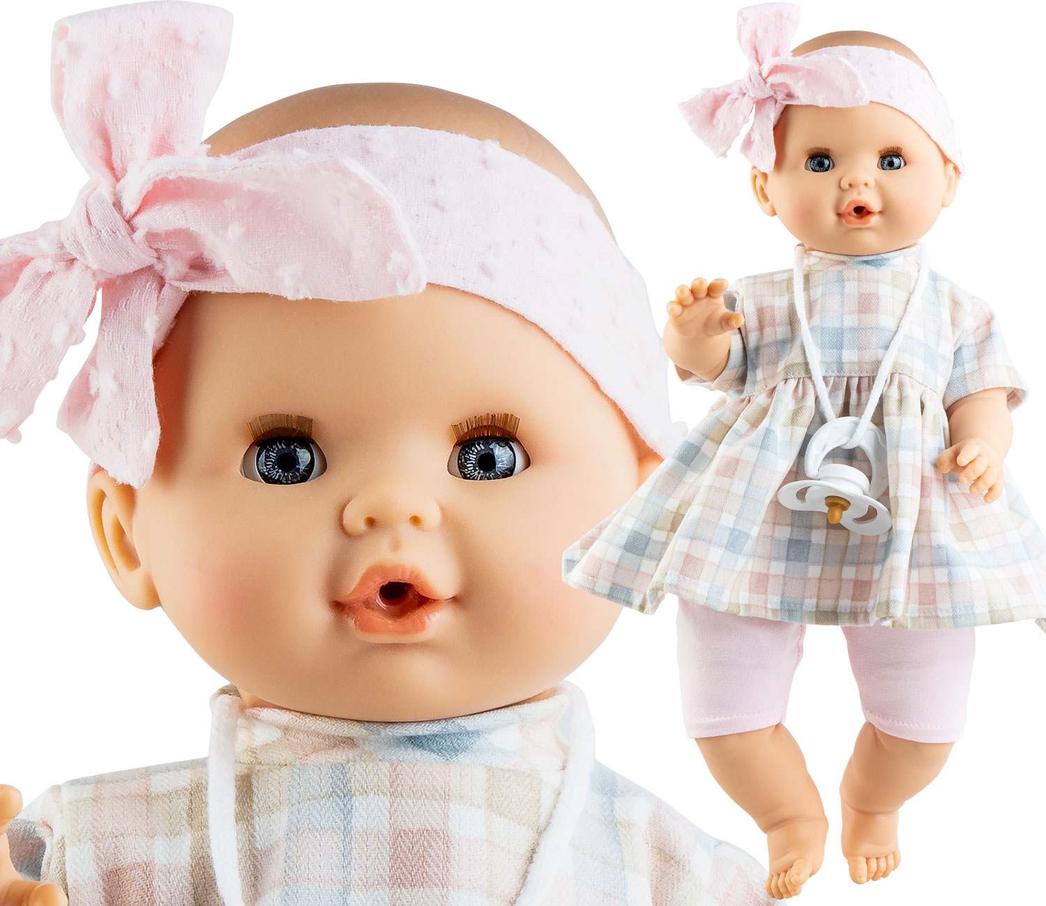 Firma Paola Reina tworzy wyjątkowe i niepowtarzalne lalki, których marką stały się piękno i najwyższa jakość wykonania!Lalki firmy Paola Reina to gwarancja doskonałej jakości wykonania. Wytwarzane są ręcznie 100% w Hiszpanii. Są produktami markowymi, spełniającymi restrykcyjne normy dotyczące bezpieczeństwa zabawek CE.Sonia 08035Sonia o numerze katalogowym 08035 jest laleczką wykonaną z najlepszego, pachnącego karmelem, winylu.Laleczka została pięknie i starannie wykonana - ma idealnie zachowane proporcje, śliczne zamykane oczy z rzęsami.Laleczka posiada mechanizm dźwiękowy, dzięki któremu płacze oraz mówi mama, papa. Po włożeniu smoczka do ust laleczka uspokaja się.Ciało jest miękkie, materiałowe.Ze szczególną dbałością zostało również uszyte ubranko, które zachwyca fasonem i kolorami.Wielkość laleczki: 36 cmLaleczka Sonia o numerze 08035 posiada:- sukienkę,- spodenki,- opaskę,- smoczek.Laleczka zapakowana jest w gustowne i eleganckie pudełko.