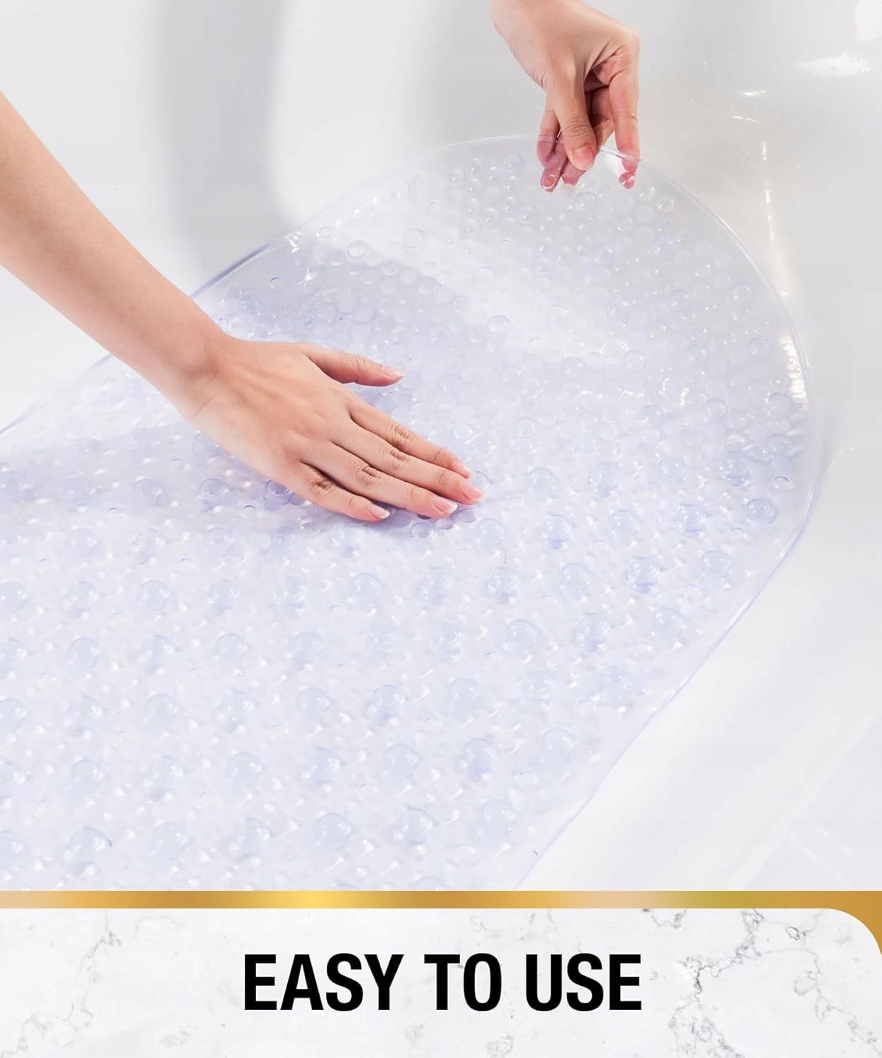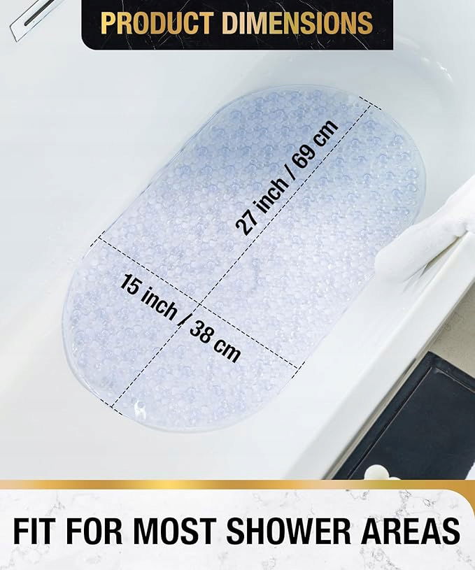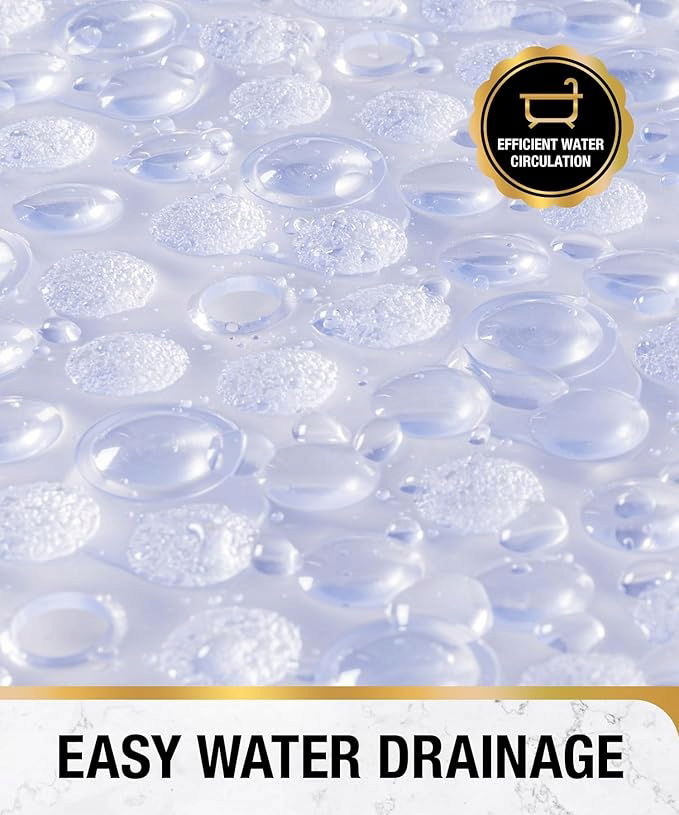 - Antypoślizgowa i bezpieczna: antypoślizgowa mata prysznicowa jest wyposażona w 167 mocnych przyssawek, które zapewniają przyczepność na gładkich, czystych powierzchniach wanny lub prysznica. Matowa tekstura, ozdobiona małymi bąbelkami amortyzującymi, zwiększa odporność na poślizg, zapewniając bezpieczne wrażenia podczas kąpieli i zmniejszając ryzyko poślizgnięcia się lub upadku w wannie.